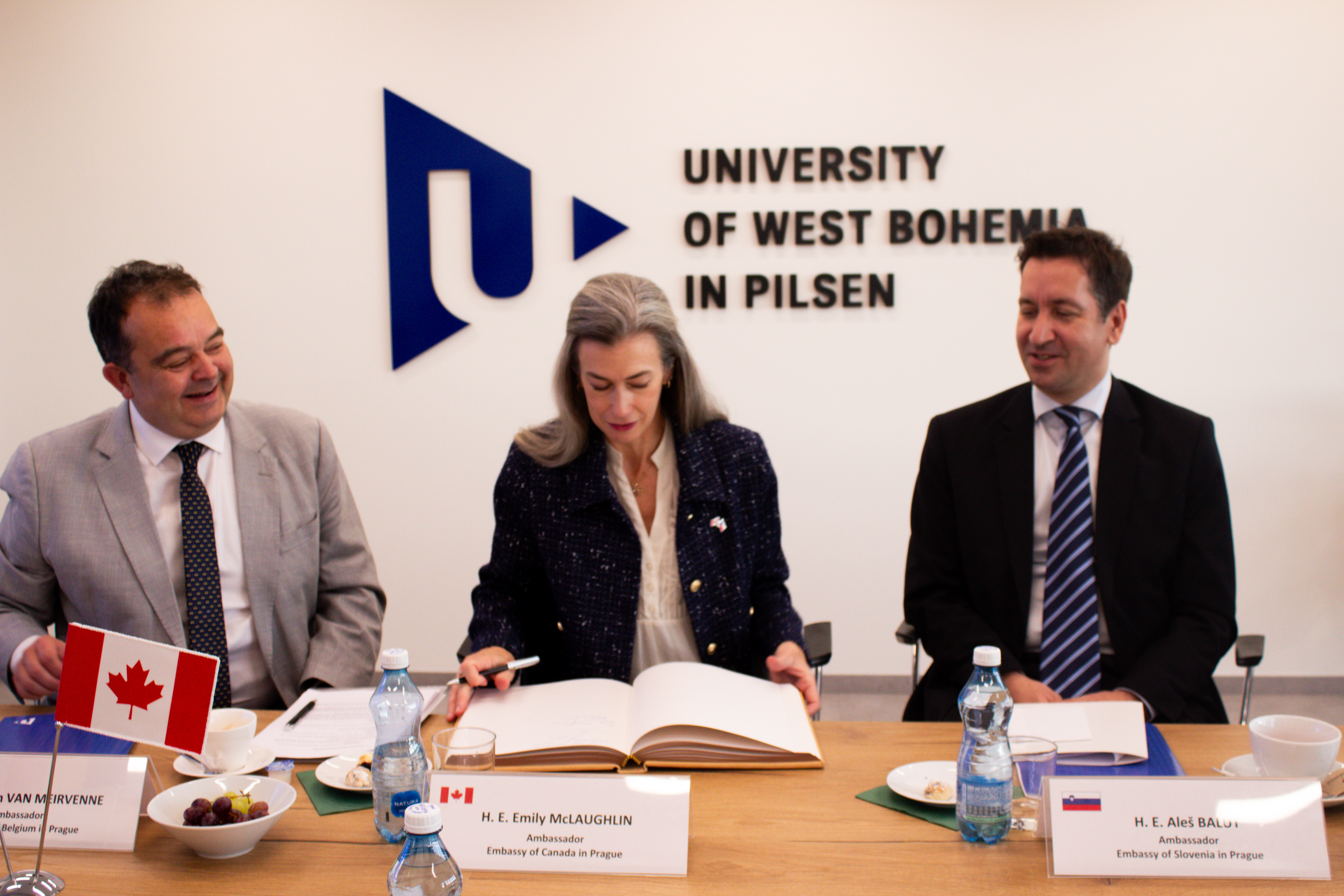 On October 23, rector Miroslav Lávička welcomed four ambassadors – from Belgium, Canada, Finland, and Slovenia – to the University of West Bohemia in Pilsen (UWB). The participants focused primarily on opportunities for further cooperation in education, research, and innovation. They also discussed topics that connect all four countries and the Czech Republic, particularly nuclear energy and technologies of the future.