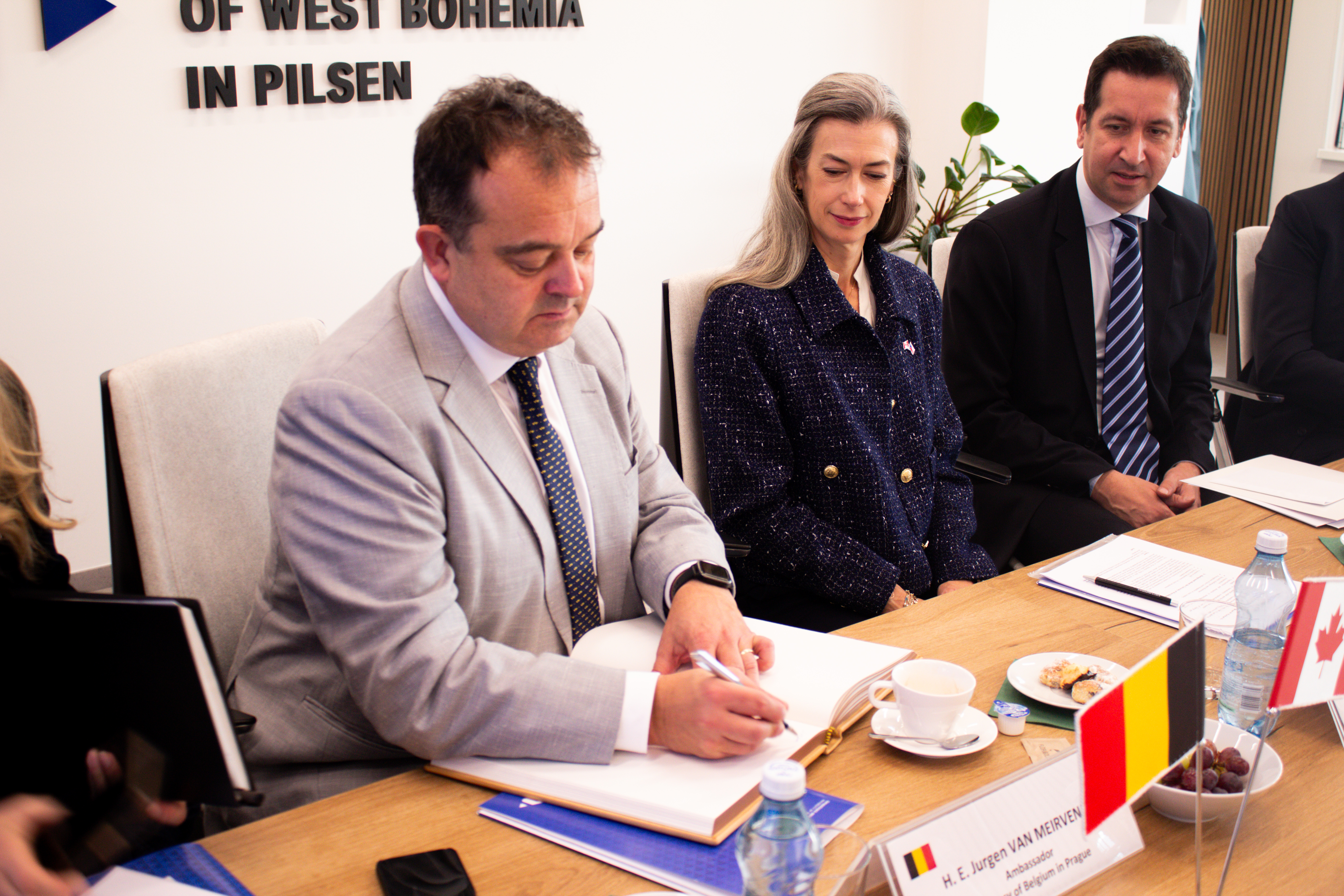 Na půdě Západočeské univerzity v Plzni (ZČU) přivítal rektor Miroslav Lávička 23. října čtyři velvyslance – z Belgie, Finska, Kanady a Slovinska. Účastníci setkání se věnovali především možnostem další spolupráce ve vzdělávání, výzkumu a inovacích. Hovořilo se také o tématech, která spojují všechny čtyři země i Českou republiku – zejména o jaderné energetice a technologiích budoucnosti.