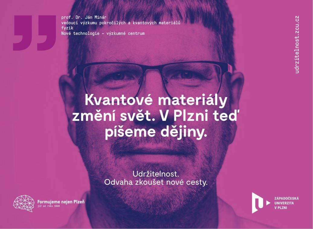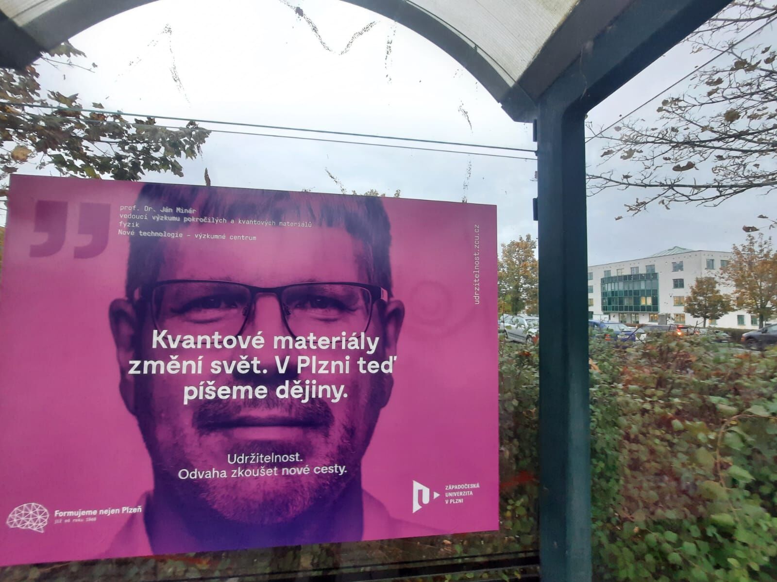 “Quantum materials will change the world. In Pilsen, we are making history,” says physicist Jan Minár, who is studying the structural, electrical, and magnetic properties of new prospective materials at the University of West Bohemia’s New Technologies Research Center (NTC UWB). These materials lead to new types of chips and energy savings. People can now find him with this slogan on selected advertising spaces in Pilsen, where UWB showcases the leading figures of its sustainable research.