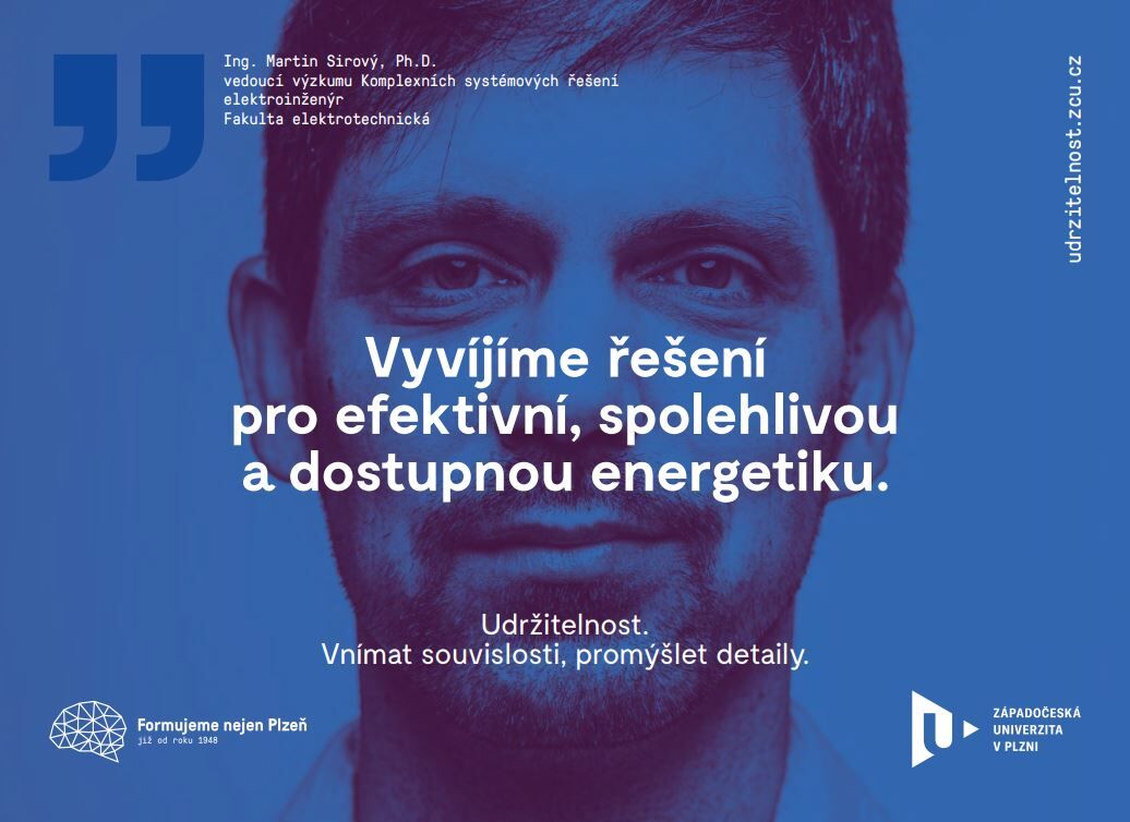 The main message of the online and offline campaign is to connect science, education, and the university’s everyday functioning with an emphasis on responsibility towards future generations. “At UWB, we believe that science and research must serve society. The university is and wants to continue being a leader in the regional context, facilitating the development and dissemination of know-how, social changes, and changes in thinking across all areas of life—from education to the economy to interpersonal relationships,” said Miroslav Lávička, the rector of UWB, who is one of the faces of the campaign.