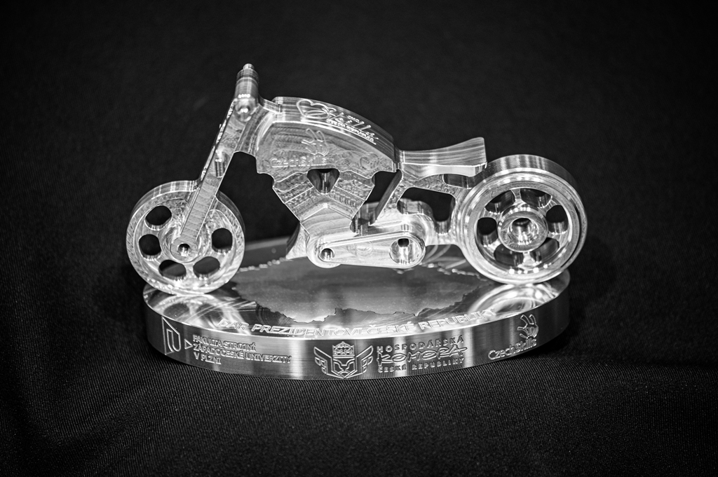 Na mezinárodním šampionátu EuroSkills, kam se před dvěma lety Jiří probojoval jako vítěz národní soutěže v CNC frézování, dostal za úkol naprogramovat a obrobit model motocyklu. S náročným zadáním soutěžního úkolu si ale mnozí soutěžící nevěděli rady. „V akci je všechno jinak. Hlava jede, čas letí a nervy pracují,“ popsal student, který se ve svém bakalářském studiu specializuje na technologii obrábění. „Zkrátka to nedopadlo podle mé představy a dal jsem si za cíl, že tu motorku jednou vyrobím,“ dodal.