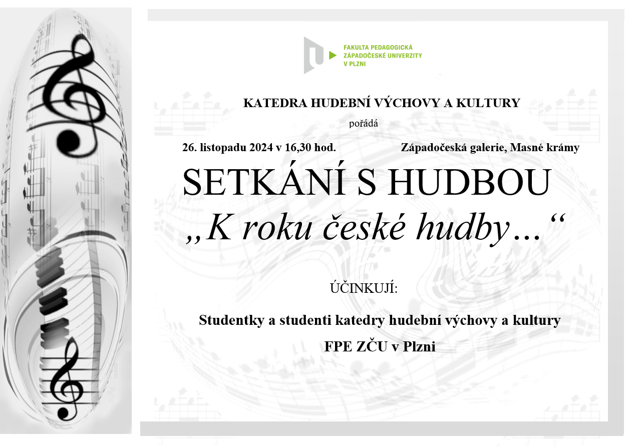 Join us in celebrating the Year of Czech Music at a special concert on Tuesday, November 26, at 4:30 PM, held in the Masné krámy Gallery in Pilsen.