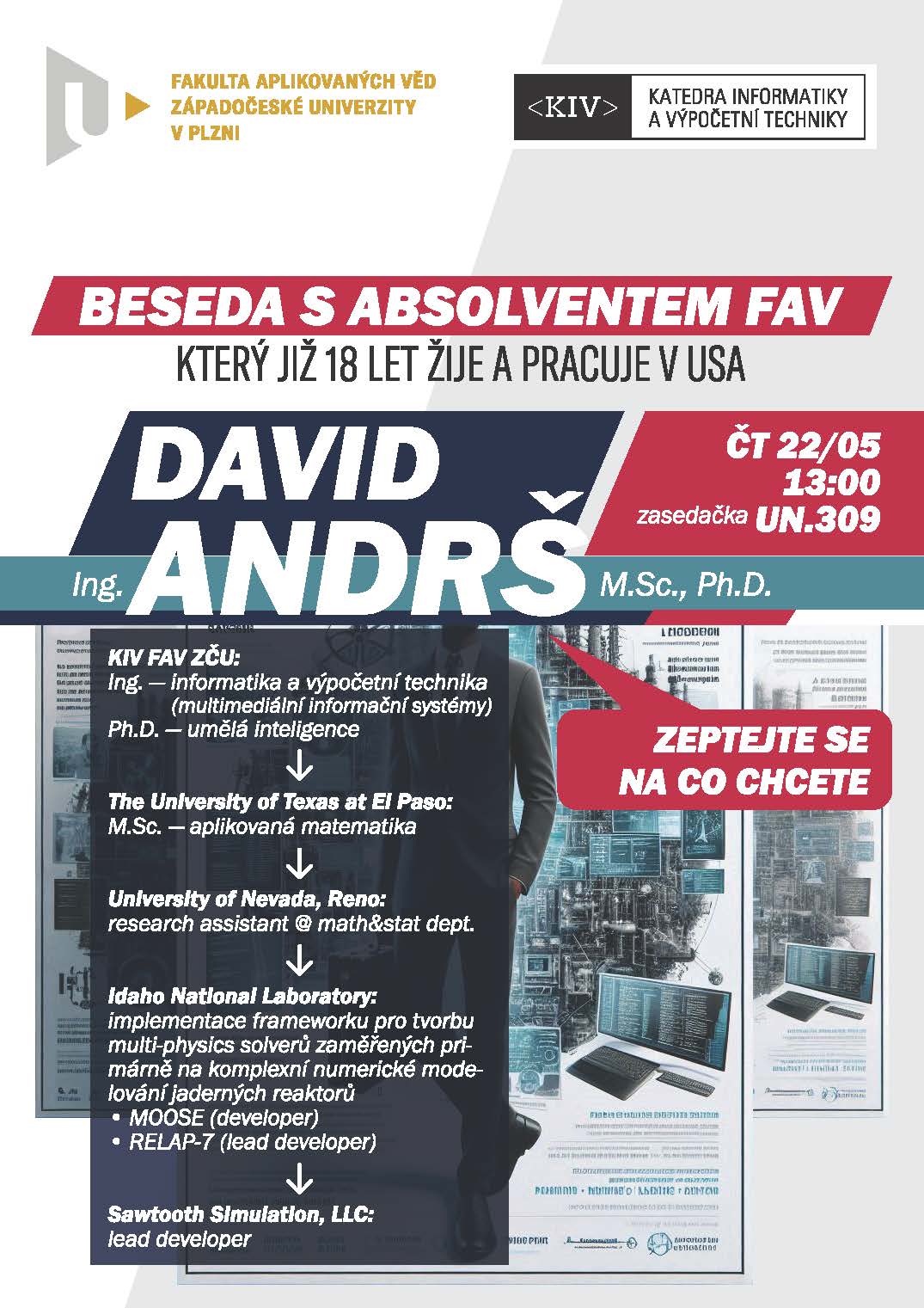 David Andrs has been living and working in the USA for 18 years. He studied computer science and engineering at FAV and holds a PhD in artificial intelligence. His professional career is certainly worth mentioning, having worked at the University of Nevada and the Idaho National Laboratory, one of the world's largest nuclear energy research organisations.