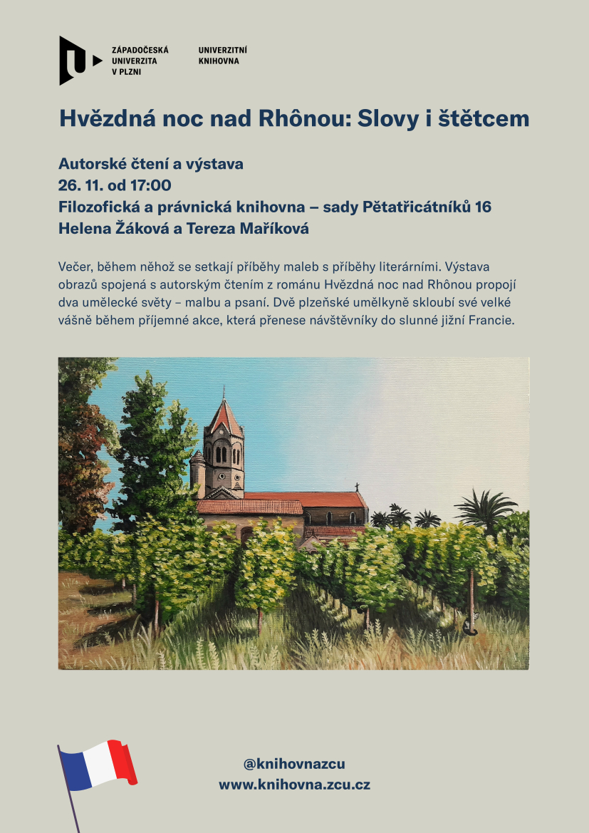 V prostorách Univerzitní knihovny Západočeské univerzity v Plzni bude vystavena tvorba malířky Terezy Maříkové, jejíž díla jsou inspirována krásnou francouzskou Provence. Úzké uličky, intimita Středomoří, světlo a malebná zákoutí…