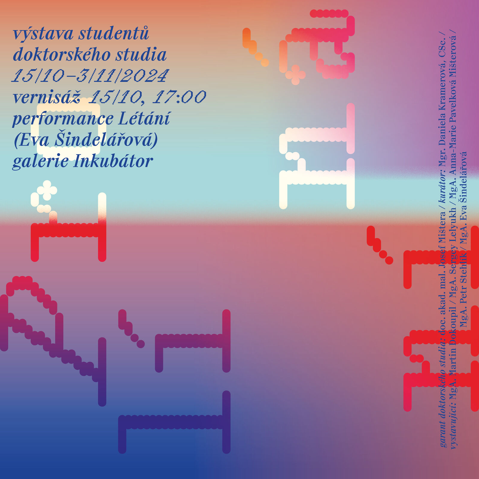 The second exhibition in the Interweaving series offers a unique opportunity to glimpse into the future of Czech art and design, where the boundaries between disciplines are increasingly permeable. The exhibition also shows the importance of doctoral studies in art as a space for experimentation, interdisciplinary collaboration and deep reflection on artistic practice, where seemingly unrelated approaches find common ground.