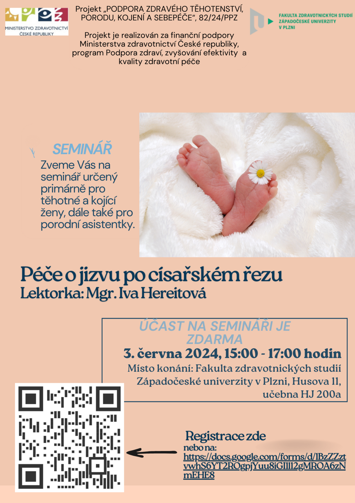 The second lecture "Care of the scar after caesarean section" will take place on Monday 3 June from 15:00 to 17:00 in room HJ 200a, again in the building of the Faculty of Health Care Studies, under the guidance of lecturer Iva Hereitová.