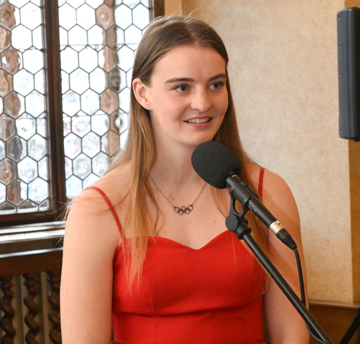 athlete Adéla Hanáková, a student of the Gymnasium, Pilsen, Mikulášské náměstí.