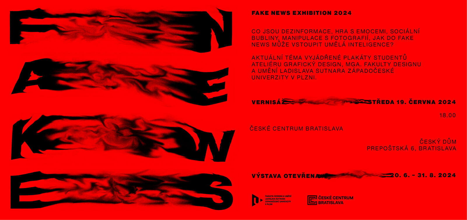 Co jsou dezinformace, hra s emocemi, sociální bubliny, manipulace s fotografií, jak do Fake News může vstoupit umělá inteligence? Aktuální téma vyjádřené plakáty vzniklými pod vedením profesora Rostislava Vaňka a docentky Kristiny Fišerové.