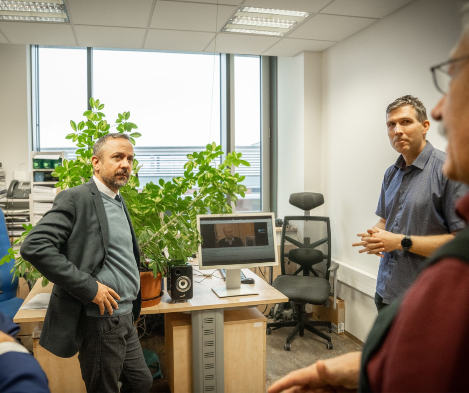 The Minister and other members of the delegation visited a total of seven sites. Jindřich Matoušek introduced them to the issues of speech-to-text synthesis and voice cloning. Luboš Šmídl presented research on telemedicine self-examination of speech and memory for rapid detection of cognitive disorders using machine learning methods. Aleš Pražák explained how the subtitling of programmes for Czech Television takes place. Lukáš Picek talked about the applications he helped develop, which are designed to protect not only nature but also human health. Marek Hrúz presented the topic of sign language recognition and synthesis for the deaf, which he also worked on during an international workshop at Johns Hopkins University in Baltimore. The tour ended with Miroslav Jiřík, who presented two areas of research in which he is involved. The first was an AI-assisted online surgical suturing tutorial project, and the second was research aimed at developing tools to support biomedical research, particularly with respect to liver surgery and multiscale vascular analysis.