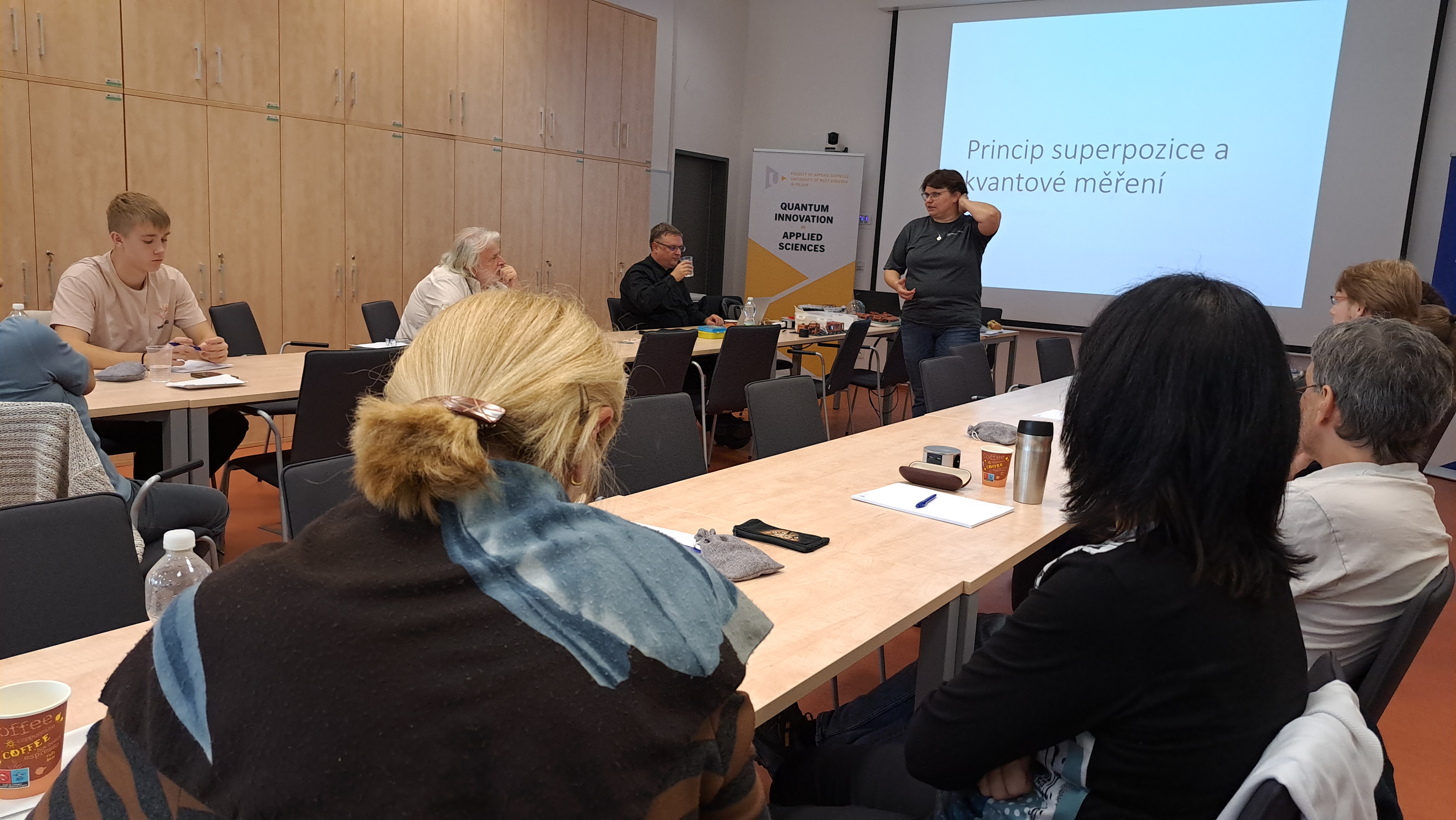 quantum technologies, Zdeňka Koupilová from the Faculty of Mathematics and Physics at Charles University led a workshop. High school teachers and pedagogy students tried out in practice how principles of quantum physics can be explained using games and experiments.