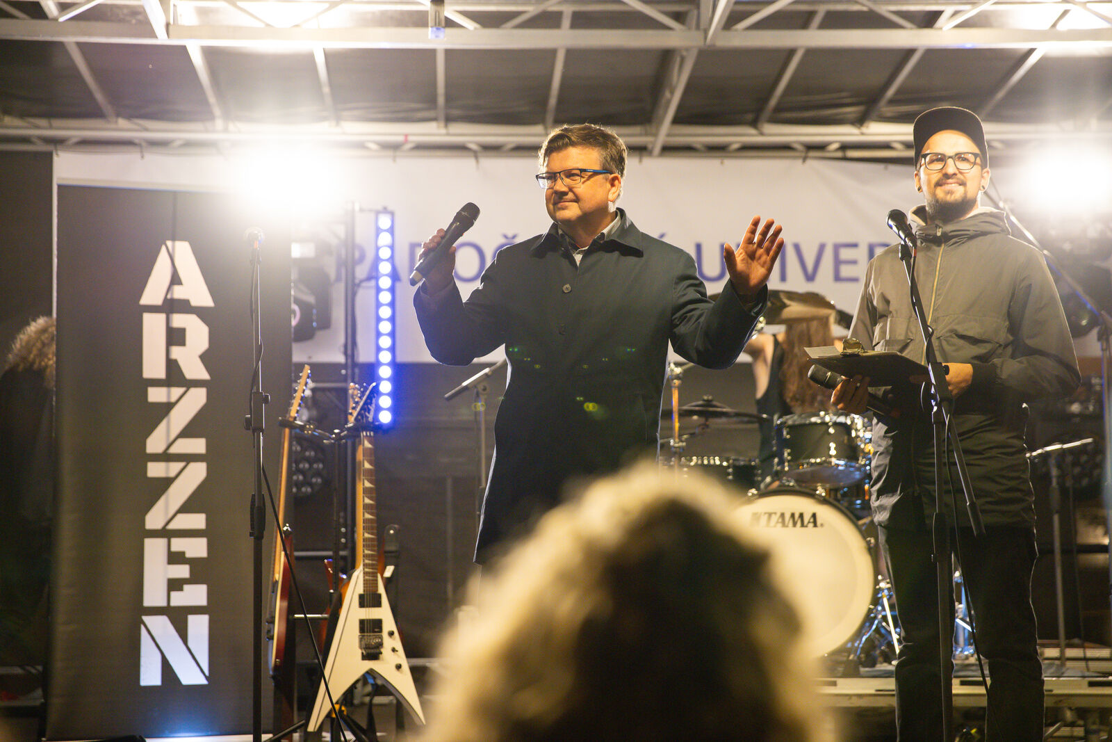 The Rector of UWB Miroslav Lávička did not miss the informal welcome of students in the new academic year. After expressing his affection for music, especially metal music, he expressed his joy at the large number of participants and also at the fact that the University of West Bohemia was able to start teaching as originally planned, unlike some other education institutions in the country, which were affected by the flood in recent days. "Today's event is primarily a celebration of the new academic year. But let us not forget that studying also involves responsible performance of tasks. Students in their second and higher years should also help younger colleagues who are in their first years," the rector said towards the audience.