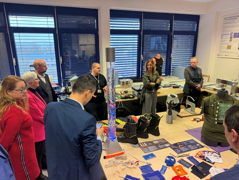 The meeting in Pilsen was also attended by members of the FEL management, including František Steiner, who will assume the position of dean of the faculty on March 1. Other participants included FEL Vice-Dean for Science František Mach,head of the Materials Research Group and the Department of Materials and Technologies Aleš Hamáček, and Radek Soukup, head of the Smart Textiles Team. The CLUTEX cluster (technical textiles cluster) was represented by companies such as Sintex, Jitex Comfort, and Inotex. Participating institutions included the Technical University of Liberec, the Secondary and Higher Vocational School in Liberec, VÚTS (Research Institute of Textile Machinery), TZÚ (Textile Testing Institute), and VÚB, a manufacturer of protective textiles.