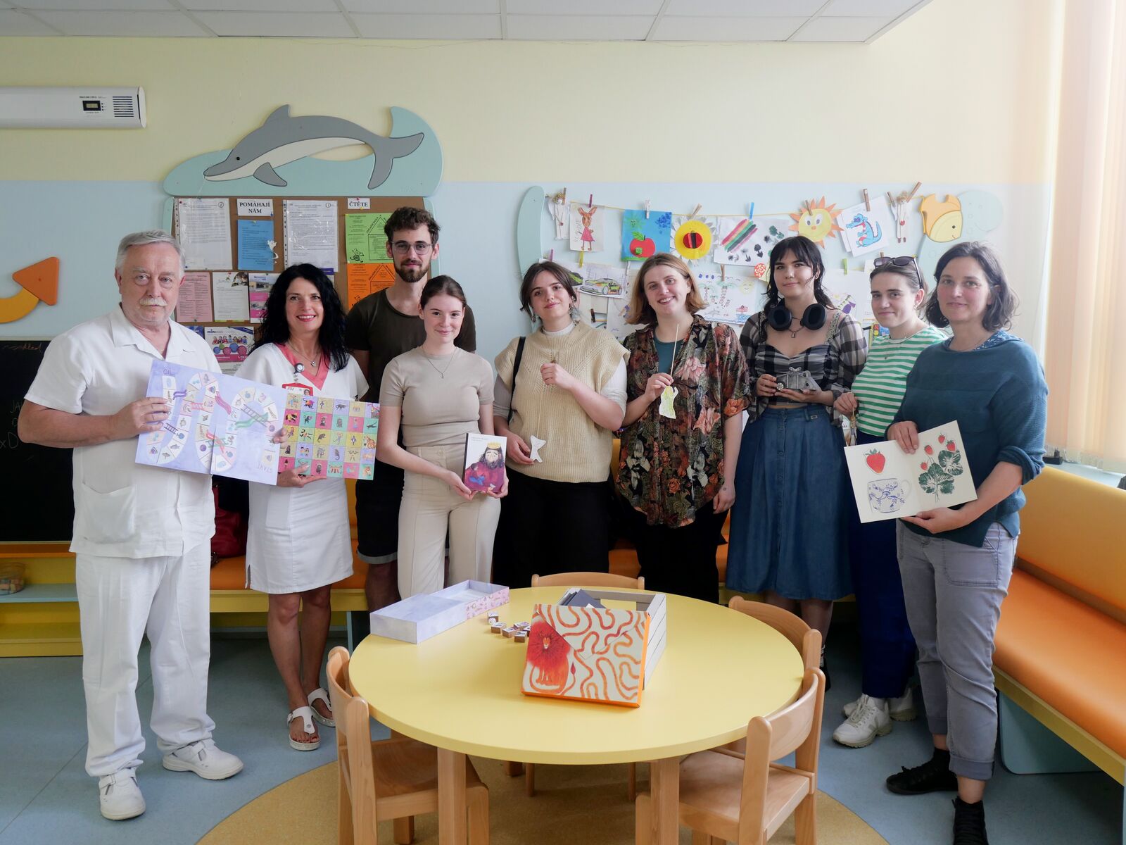 Throughout the winter semester, students worked on books designed specifically for the hospital environment. Their work was then presented at the beginning of June to the children at the clinic and to experts from the University Hospital Pilsen - play specialist Ludmila Romová, head nurse of the Children's Clinic Romana Sedláčková and the head of the Children's Clinic Prof. MUDr. Josef Sýkora.