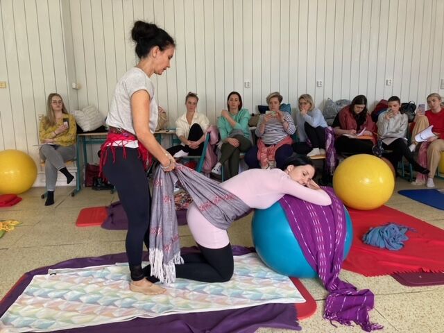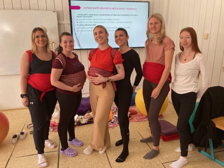 „V průběhu dvou nabitých kurzů, Umění porodní asistence a Rebozo, se probralo mnoho zajímavých informací z porodní asistence a došlo i na praktické tréninky. Porodní asistentky z praxe i naše studentky tak měly možnost si vyzkoušet zevní vyšetření těhotné ženy, podporu těhotenského bříška podvazovými šátky či opečování ženy v těhotenství, při porodu a po porodu šátkem rebozo,“ hodnotí průběh této vzdělávací akce vedoucí katedry ošetřovatelství a porodní asistence FZS Jiří Frei.