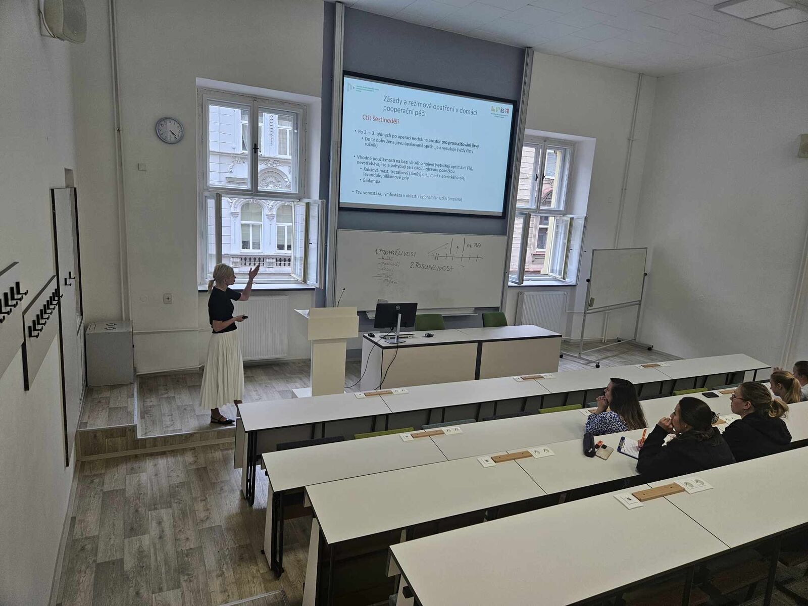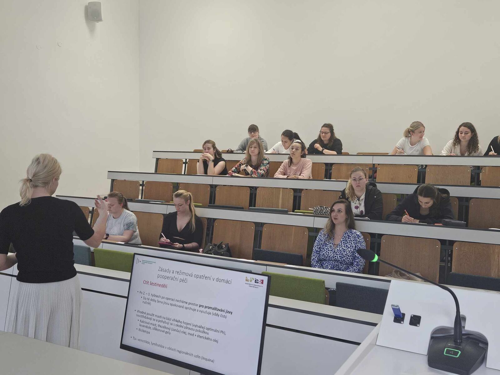 Out of the 11 lectures planned, three have already been delivered. The first lecture, Mother's movement during pregnancy and in the postpartum period, was held on 27 May under the guidance of Ilona Zahradnická. In June, two lectures have been held so far, namely the lecture Care of the scar after a caesarean section under the guidance of lecturer Iva Hereitová, which took place on 3 June, and Physiotherapy methods suitable for pregnant and breastfeeding women under the guidance of lecturer Ilona Zahradnická, which took place on 10 June. The lecturers thus passed on their knowledge and experience to the audience, who always left enriched and educated in the context of the lectured professional topic.