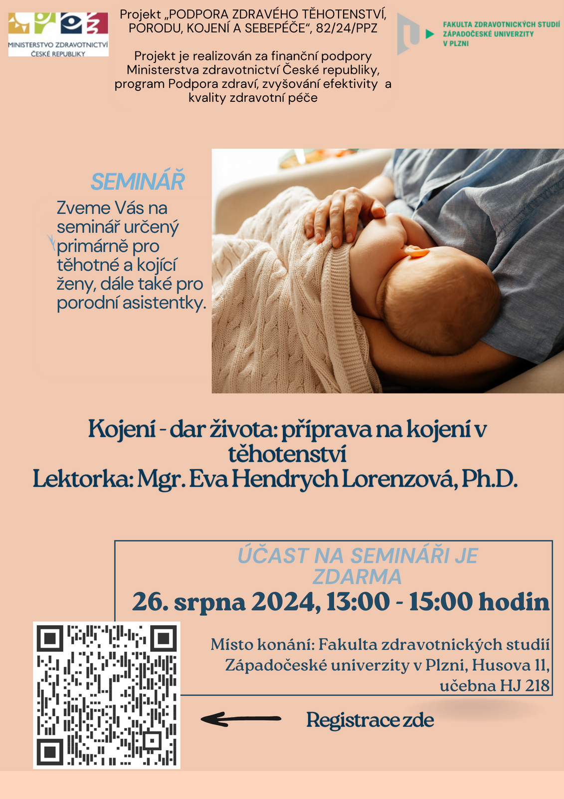 The project "Support for Healthy Pregnancy, Childbirth, Breastfeeding and Self-Care", 82/24/PPZ, is implemented with the financial support of the Ministry of Health of the Czech Republic, Health Promotion, Increasing the Efficiency and Quality of Health Care Programme.