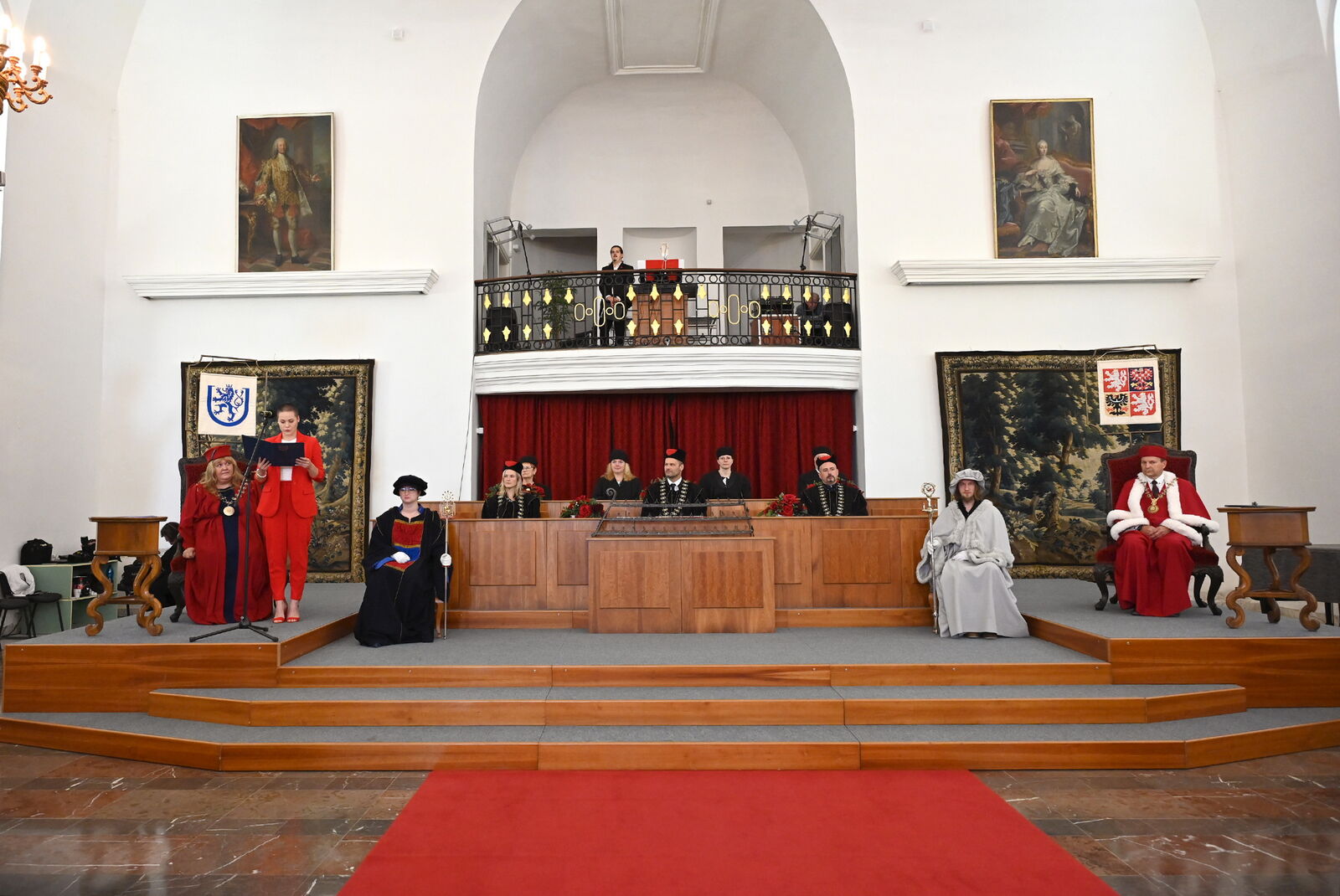 Své úspěchy oslavila také výrazná část absolventů, kteří dosáhli vynikajících výsledků ve studiu. Celkem 94 z nich si odneslo červené ruličky s diplomem s vyznamenáním.