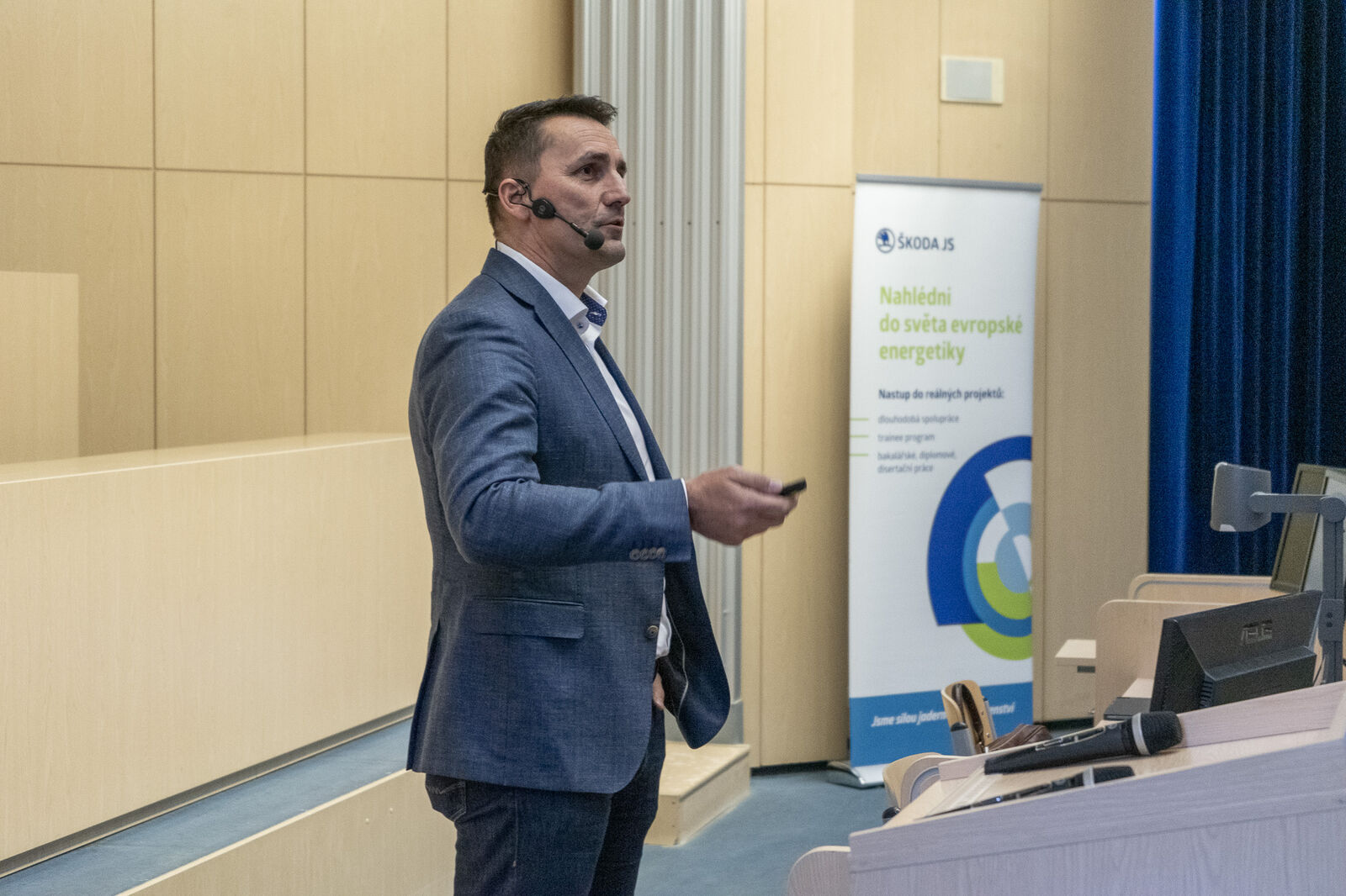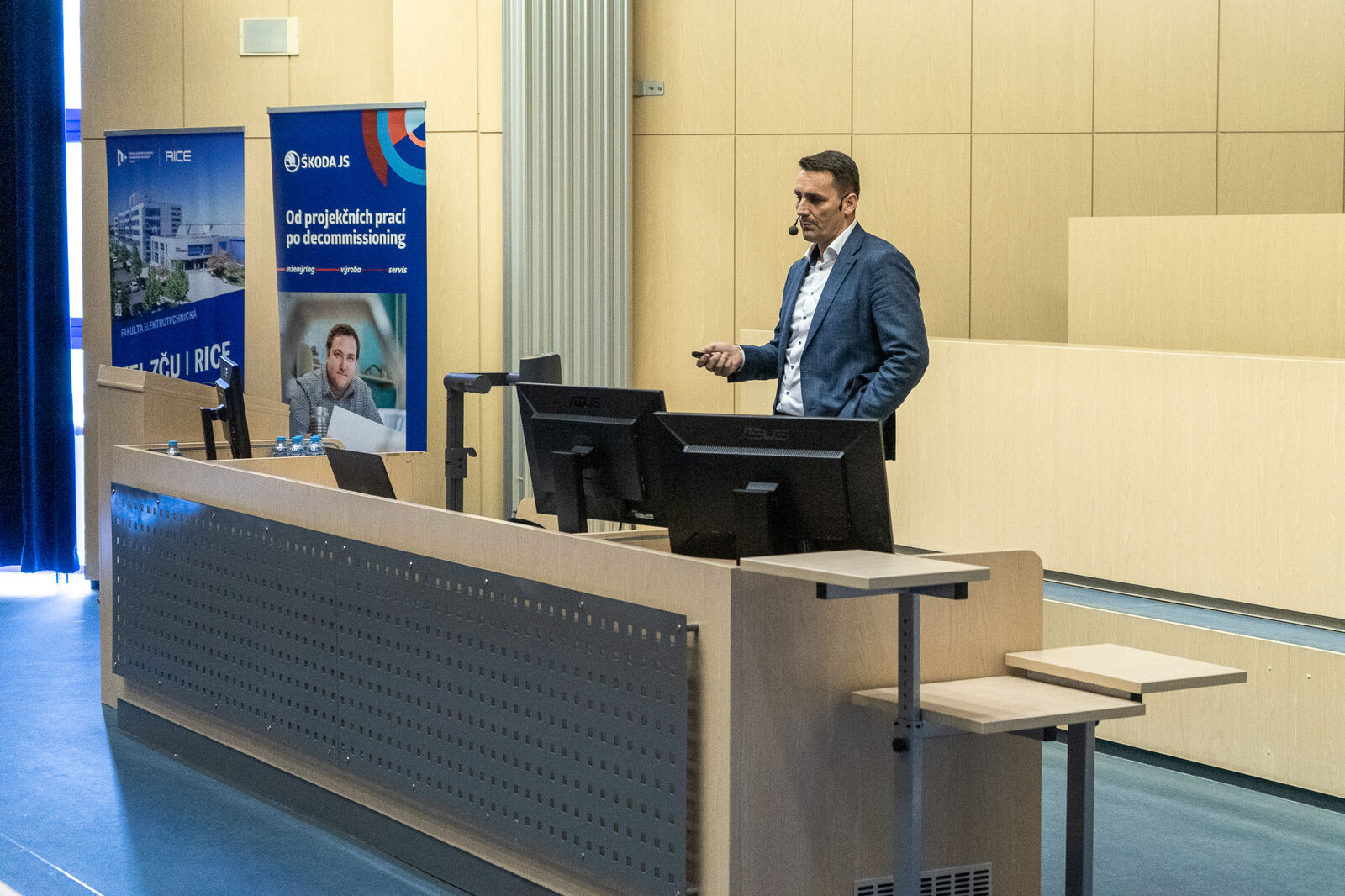 Before the lecture began, directors Zronek and Krček met with the Dean of the Faculty of Mechanical Engineering, Vladimír Duchek, to discuss support for studies at the Department of Electrical Power Engineering, specializing in the Design of Power Engineering Machines and Equipment and the Design of Nuclear Power Engineering Equipment. In particular, Škoda JS supports this study focus by involving its experts in teaching.