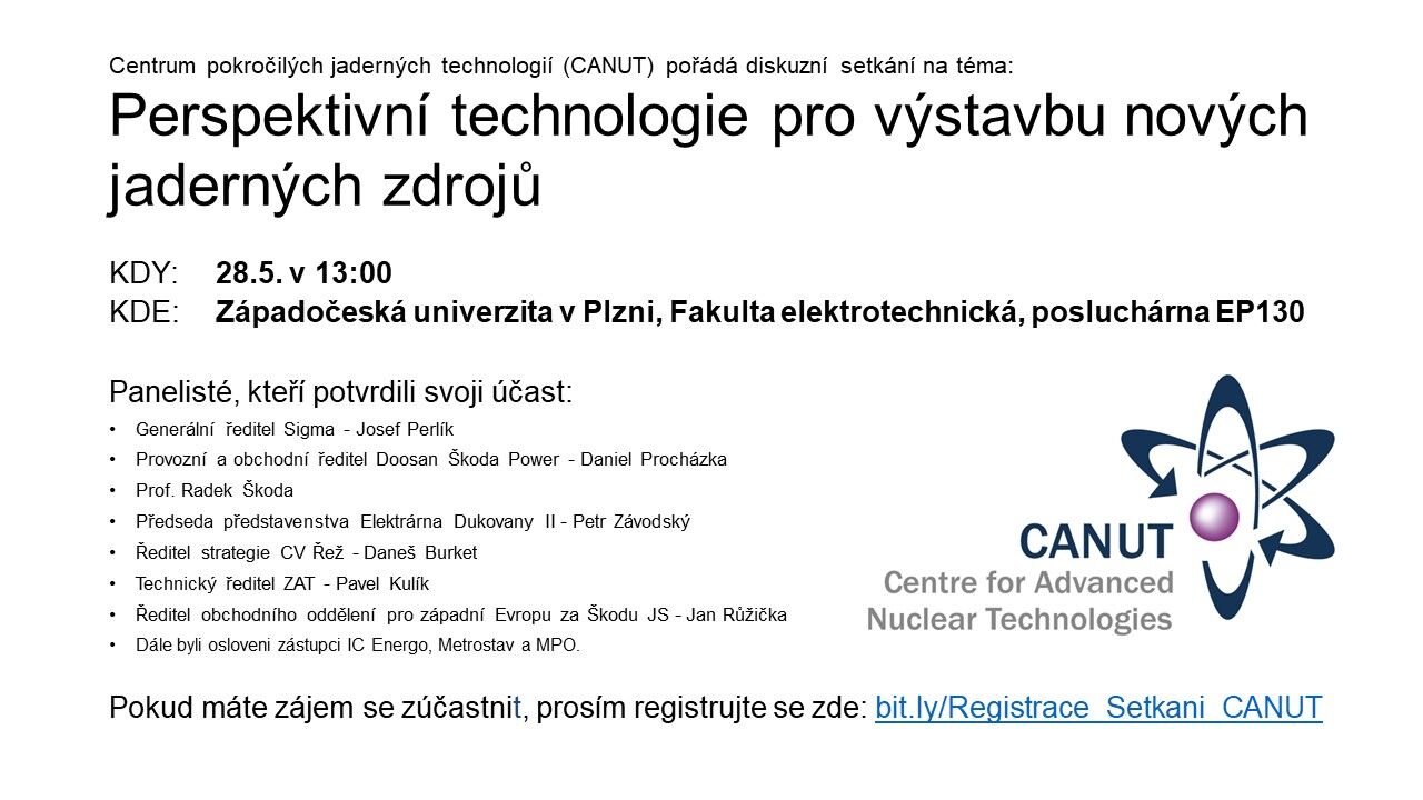 Máte-li zájem se zúčastnit a sdílet své názory na téma budoucnosti jaderné energetiky, registrujte se zde: Registrace_Setkani_CANUT
