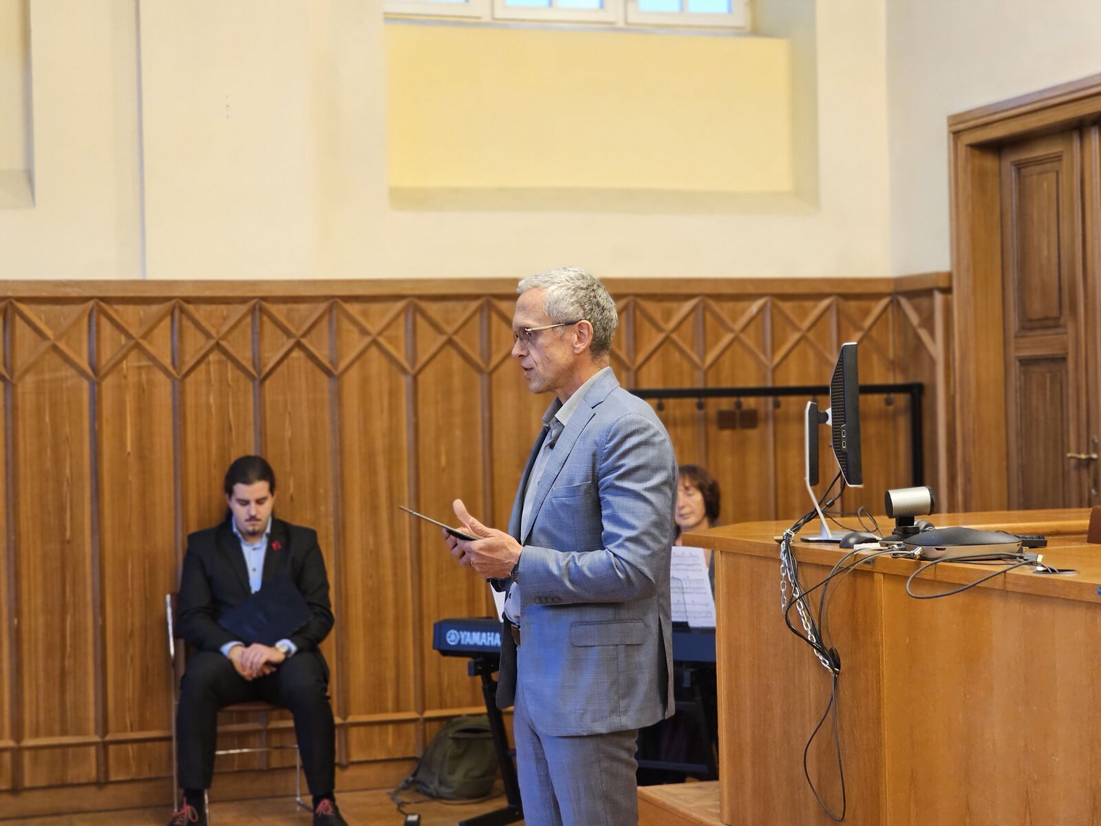 „Rekonstrukce budovy probíhaly po celé mé volební období, tedy posledních pět let, a začaly už dokonce o něco dříve. Práce vyvrcholily letos v létě v návaznosti na začátek oprav budovy na Chodském náměstí,“ prohlásil děkan fakulty Pavel Mentlík, který úderem patnácté hodiny symbolicky otevřel nově zrekonstruované prostory. Poděkoval rektorovi ZČU Miroslavu Lávičkovi a bývalému kvestorovi Petru Benešovi za podporu a spolupráci. „V poslední fázi byly podle historické předlohy rekonstruovány vnější omítky a opraveny prostory pro katedru německého jazyka,“ doplnil děkan Mentlík.