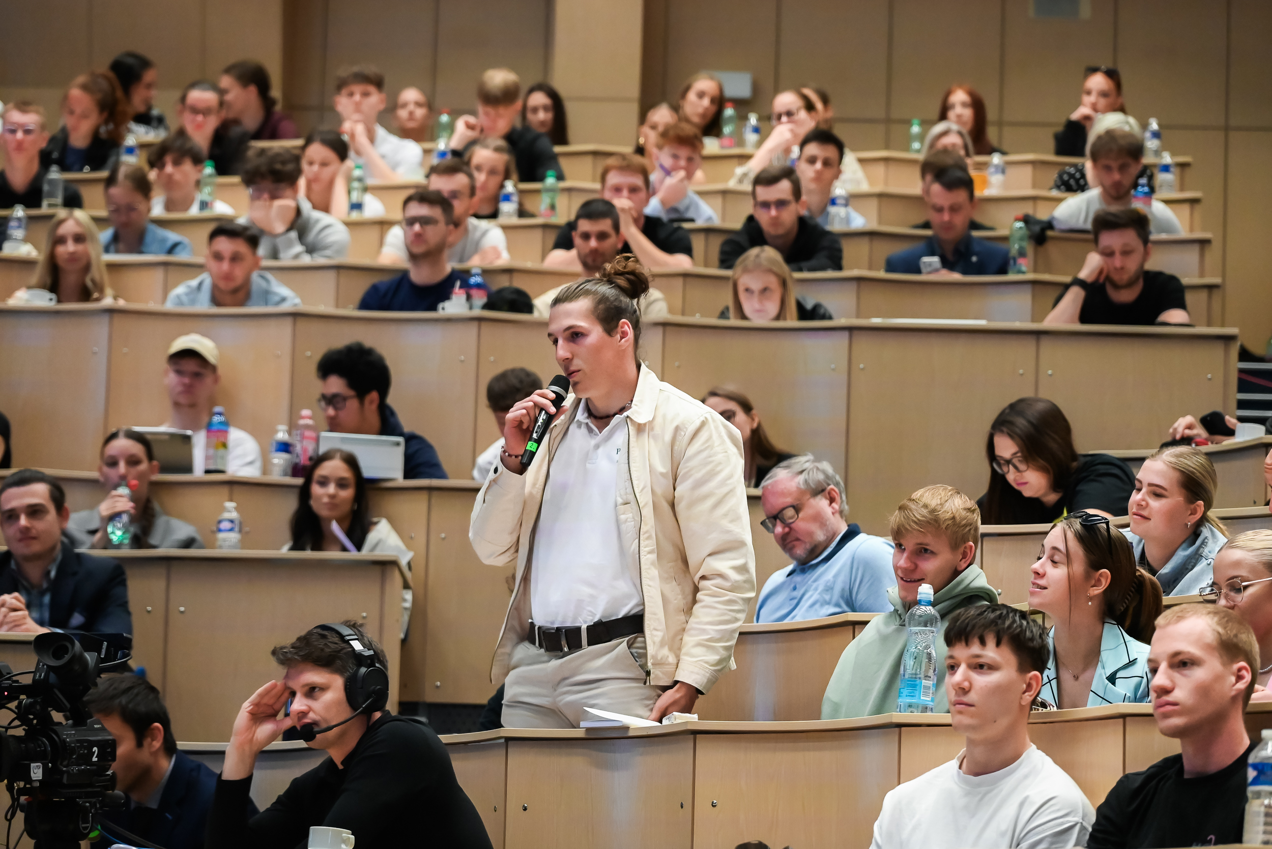 Czech National Bank Governor Aleš Michl summarised the results of the Bank Board's work at the forum. In his speech he reminded why it is necessary to create a culture of openness and responsibility, to rid the institution of unnecessary bureaucracy or to use and implement ideas. "My goal is to make the CNB a place where you come to implement your ideas. Where you will be able to change things for the better," he told the students present. In this context, the Governor mentioned that the CNB is increasingly using modern technology and has also started pilot projects using artificial intelligence.