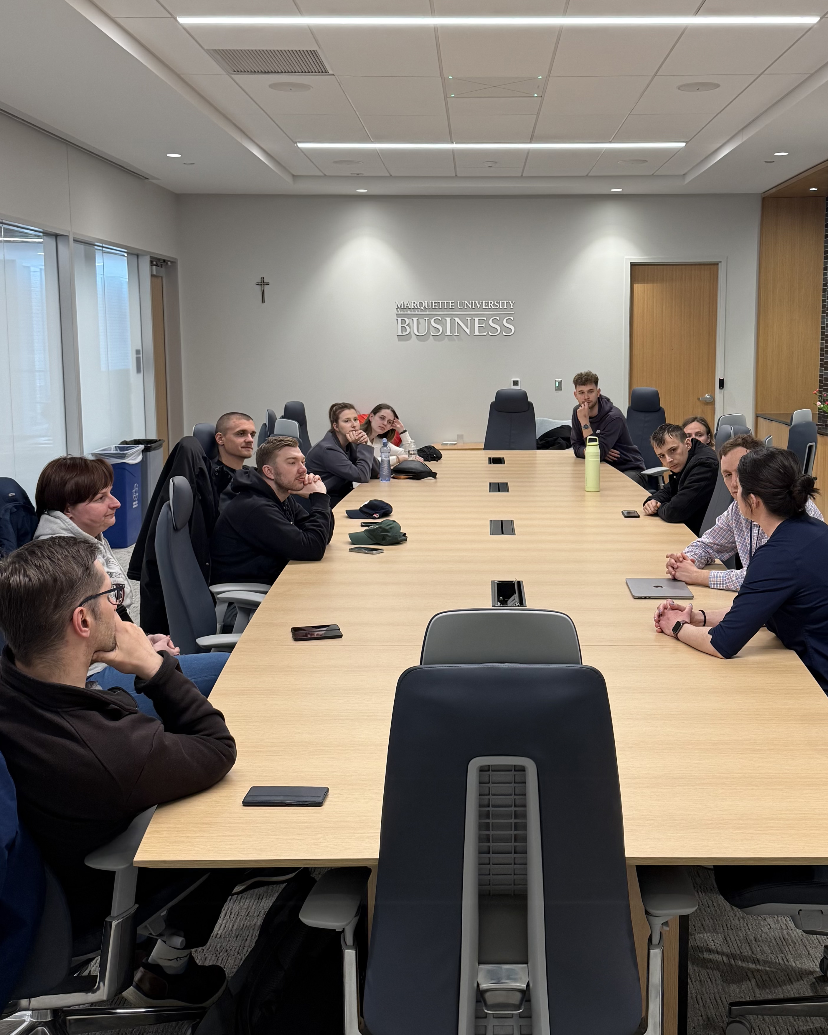 There was also space to learn about everyday student life on the university campus, meet with the rector, or discuss with former US ambassador to the Czech Republic Rick Graber. He surprised the Czech group with his detailed knowledge of the Czech environment, which he continues to follow 15 years after returning from the Czech Republic to the USA. This was followed by a lecture by Michael Korpela, a participant in the first exchange in the 1996-97 academic year, who explained the functioning of logistics in American companies. The program also included visiting the Chicago consulate, where students and teachers discussed with Czech consul Jakub Utěšený the role of the diplomatic institution in building successful inter-university cooperation between the Czech Republic and the USA.