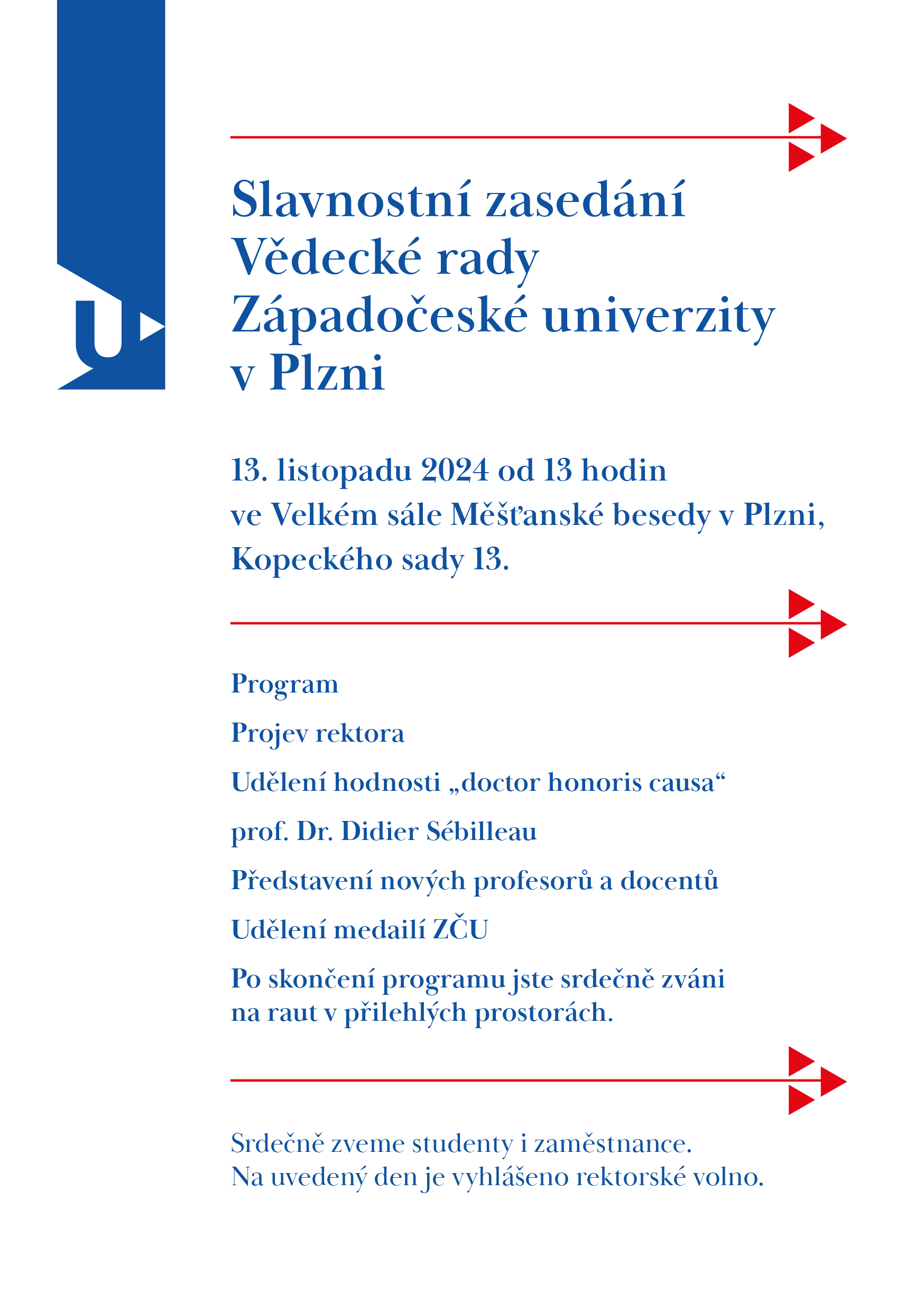 Při slavnostním zasedání Vědecké rady ZČU budou představeni noví profesoři a docenti a docentky. Zároveň budou uděleny pamětní medaile významným osobnostem univerzity.