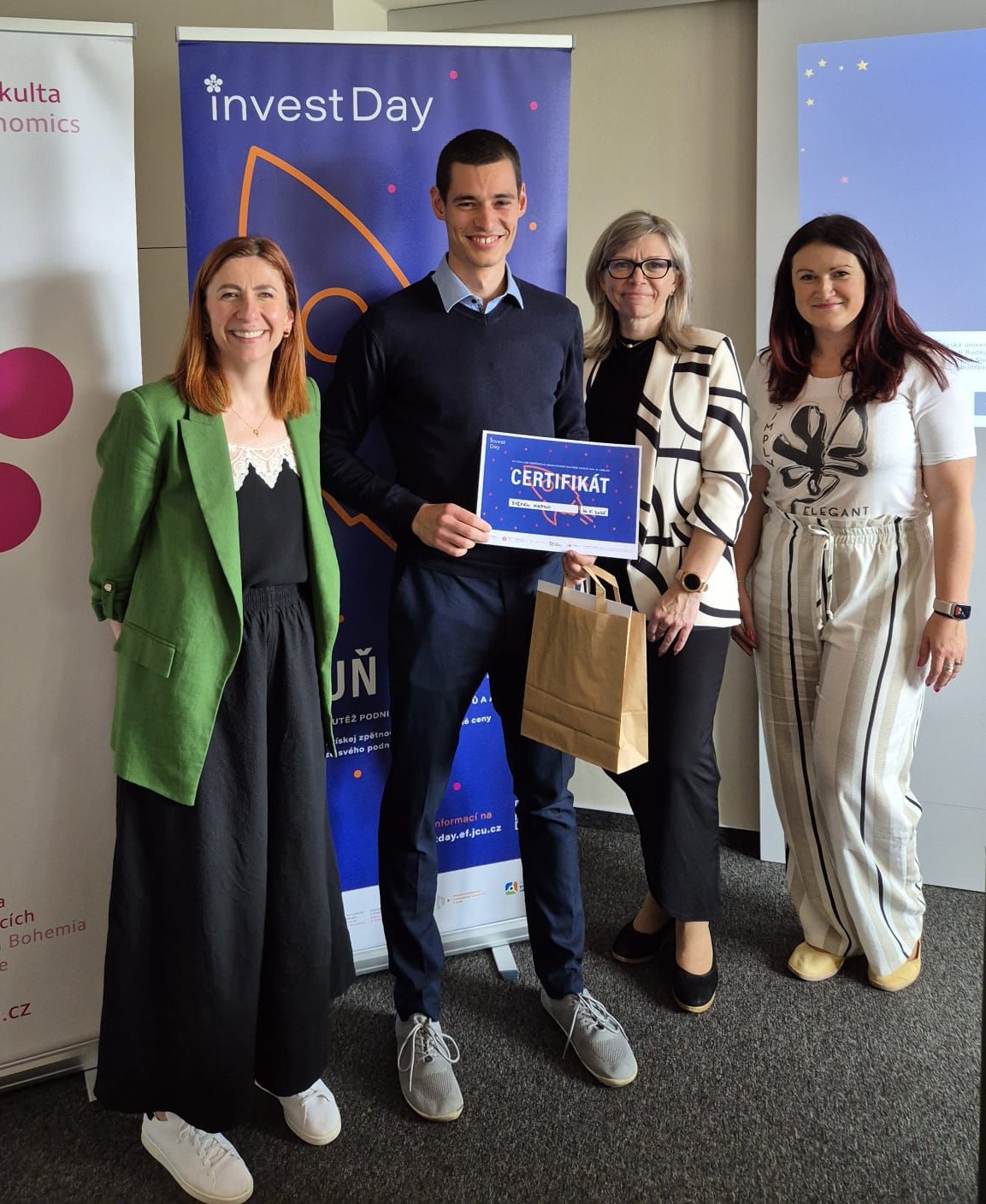 The Invest Day inter-university competition of business ideas has been organized by the University of South Bohemia in České Budějovice since 2014, joined over the years by the University of West Bohemia in Pilsen and the Prague University of Economics and Business. The competition aims to encourage the spark of entrepreneurial and innovative ideas among young students and graduates of universities.