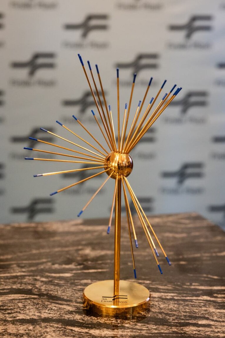 The Student Jury Award (Student Kingfisher) is created in cooperation between the festival and the Ladislav Sutnar Faculty of Design and Art. This year's design was created by Lucie Procházková from the Metal and Jewelry Studio. "For this year's Finále Plzeň festival, I created student awards inspired by the kingfisher – a bird that has become an icon of the festival as a sign of hope," said the author, adding: "In my design, I drew on the silhouette of the kingfisher, its characteristic coloring, and the dynamics of its movement. I translated this natural motif into geometric forms that create a stylized spatial composition."