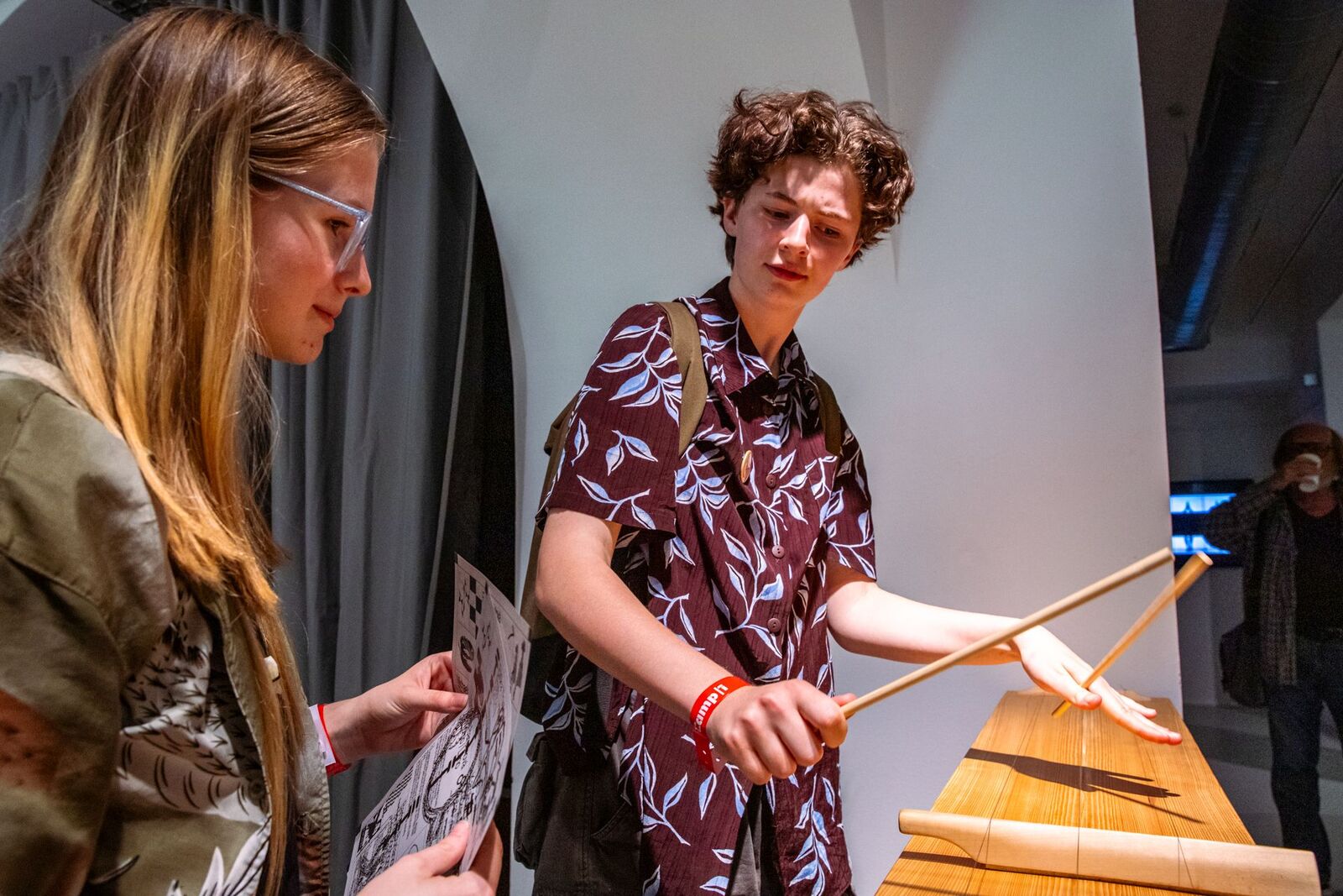 The project invites you to experiment and interact with sound art installations and contribute to the creation of an ever-changing soundscape. Each in their way, the artworks are autonomous installations that, when activated, change the acoustic ecology of the exhibition space. Some of the projects in Sound Laboratory oscillate between unconventional self-made instruments and art objects, others explore the boundary between conceptual jewelry and sound art, and yet other examples employ and combine natural elements, such as water, with technology, to produce a sonic sensation.