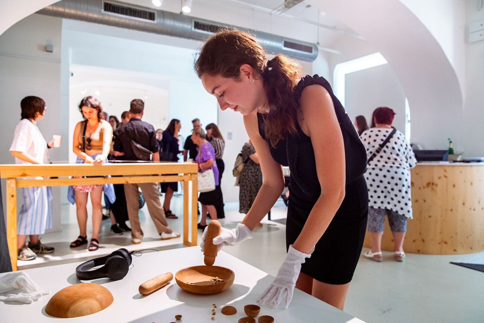 The installations invite you to explore their character – to engage with sounds in their raw or altered forms, search for unique ways of perceiving them, or create unpredictable melodies. The outcomes blend together, layering in the gallery space – much like in everyday life, where sound is never isolated. You are entering a participatory sensory space.