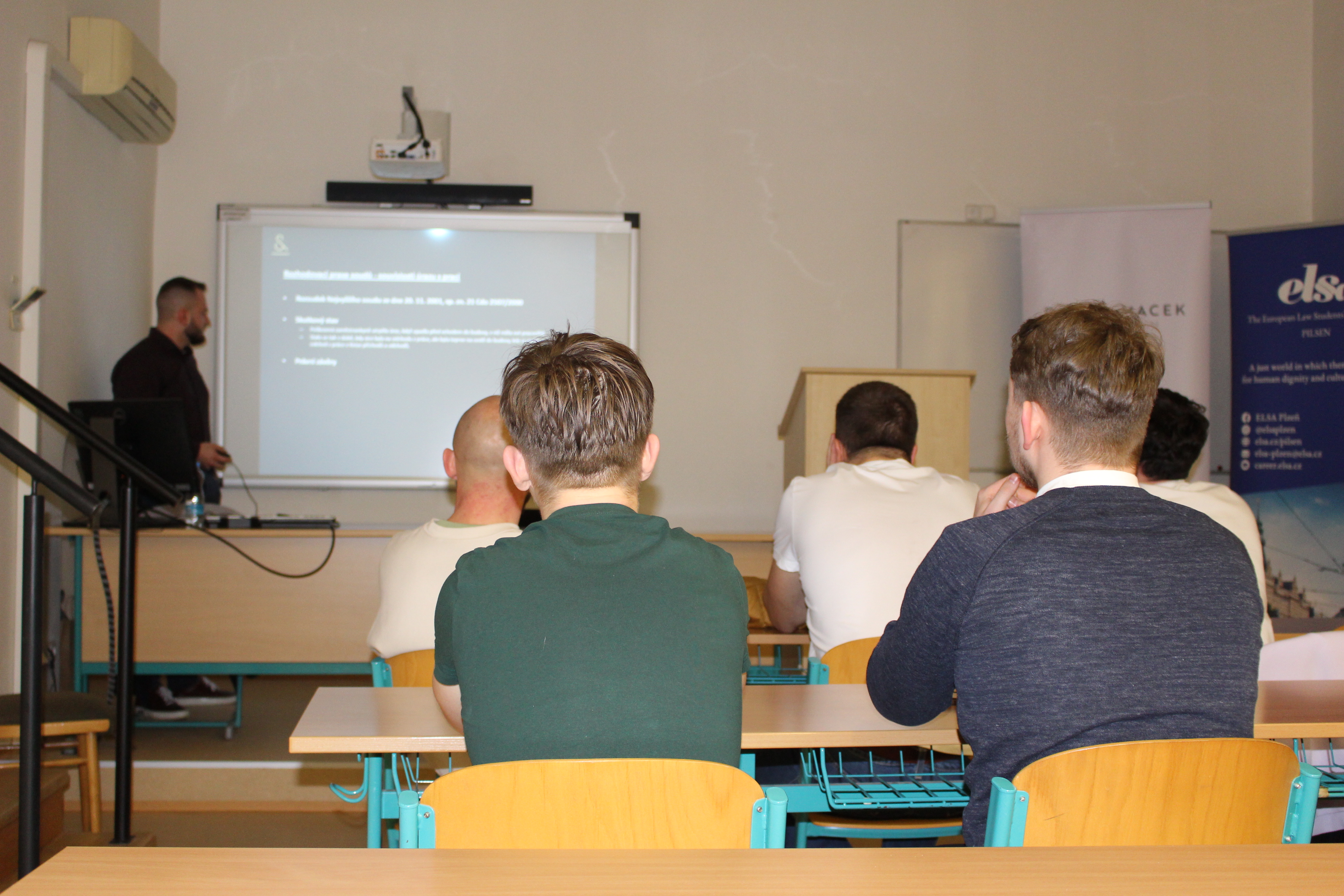 The lecture entitled Work Injuries at Teambuilding was led by Tomáš Jícha from the law firm David and Macek. Among other things, the participants learned that it depends on the meaning and purpose of the activity during which the employee suffers the injury. If they suffer an injury, for example, during team-building activities organised by the employer, such as a ski race or an employee volleyball tournament, it is likely to be an accident at work. On the other hand, if an employee is injured at a company party, which the employer organized only as a reward for his subordinates, it is unlikely to be an accident at work, because the employee is not performing an activity for the benefit of his employer at that moment. Participant Barbora K. commented on the lecture: "I got a comprehensive overview of how the issue is dealt with within the Labour Code. I consider this knowledge relevant for my studies of public administration, as it will be useful in practice."