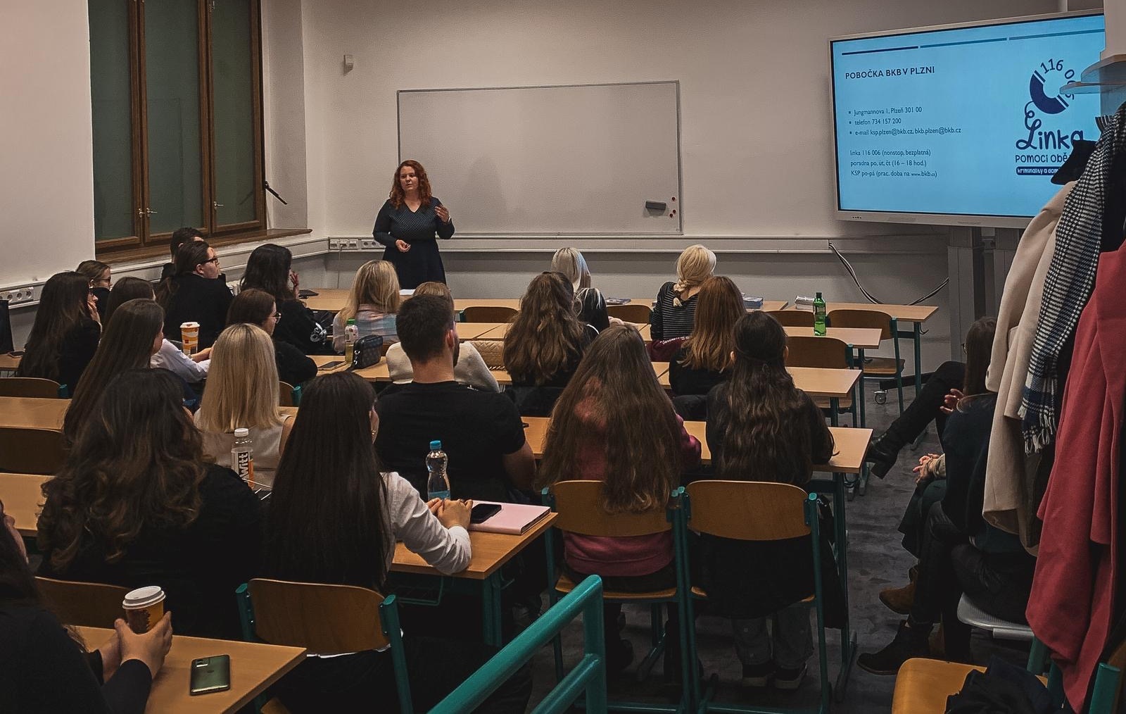 The expert lecture entitled Working with Victims of Crime was given by Vladimíra Čapková, head of the Pilsen counseling center of the White Circle of Safety. The audience learned how to communicate properly with victims of crime, how to proceed in conversations with them, how to help these people, but at the same time what to avoid. Tereza S. shared her newly acquired knowledge: "After committing a crime, the victim often blames himself. Here it is important to explain to her that she did not commit the crime. It is this message that we should show her. Knowing that the perpetrator is guilty, not her, can help the victim find new self-confidence." Another visitor to the event, Gabriel T., added: "It is also essential for the victim to get out of themselves experiencing negative emotions. The victim must cry, scream, it is a basic condition for processing the impact of the crime, so the presence of a close person, family member or trusted person is very important, this person can go through the so-called ventilation process with the victim of crime."