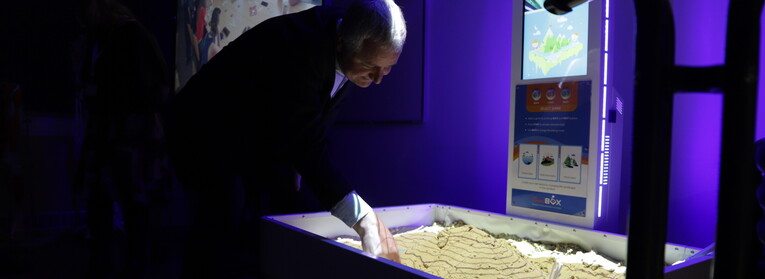 In one corner, budding researchers learn from physicists how nanomaterials are developed using plasma technologies. The result is, for example, a coating on window panes that keeps heat out of the building in summer and cold in winter. In another corner, they will find practical demonstrations of artificial intelligence and computer vision, allowing them to try for themselves how sign language can be transcribed into text. The dominant feature of the room is a 3D sandbox, which belongs to the field of geomatics. It is intended for both children and adults, who can use it to learn how to record contour lines on maps and where lava most often begins to flow after a volcanic eruption. One of the most attractive features are holograms of real objects.