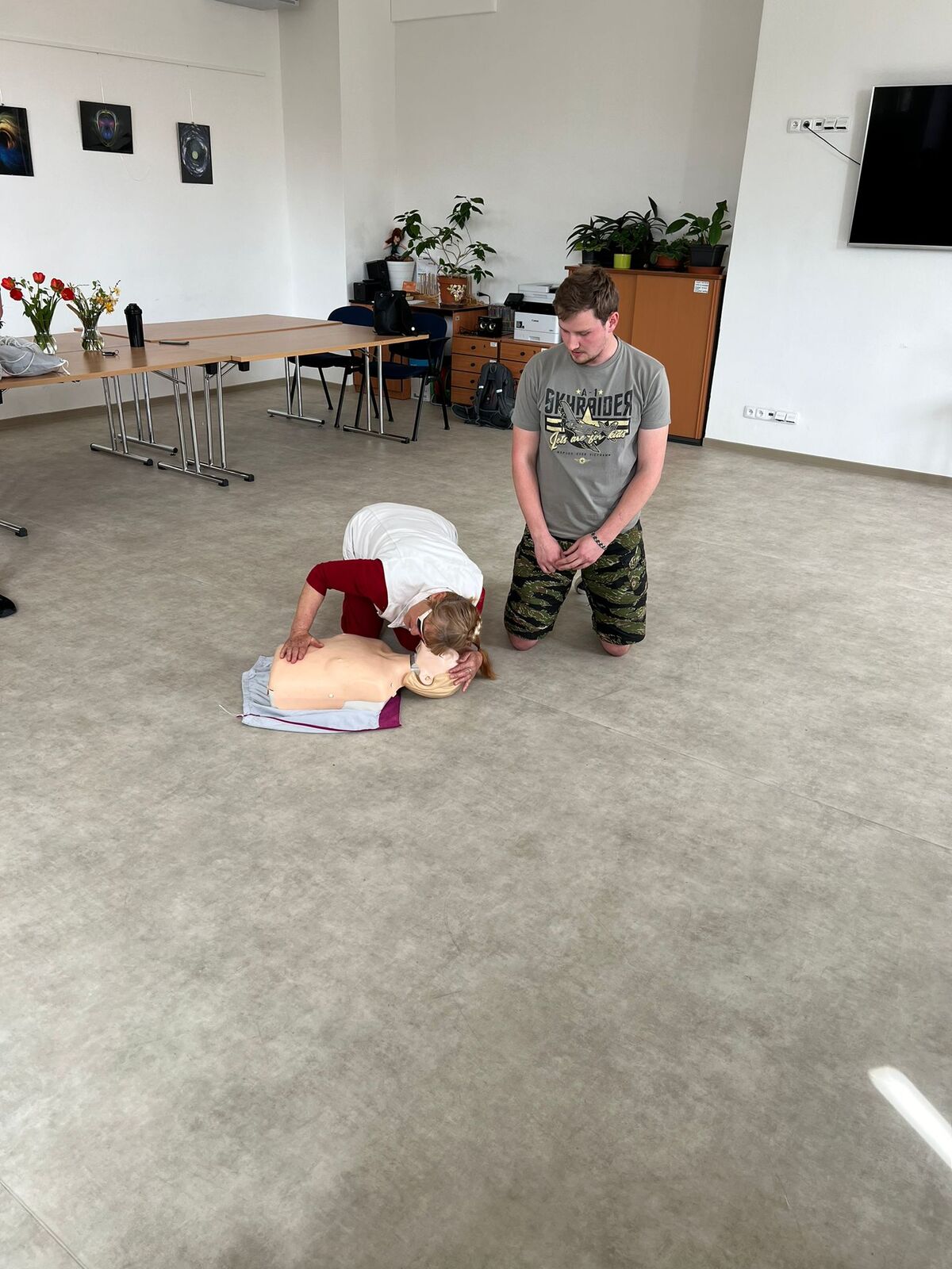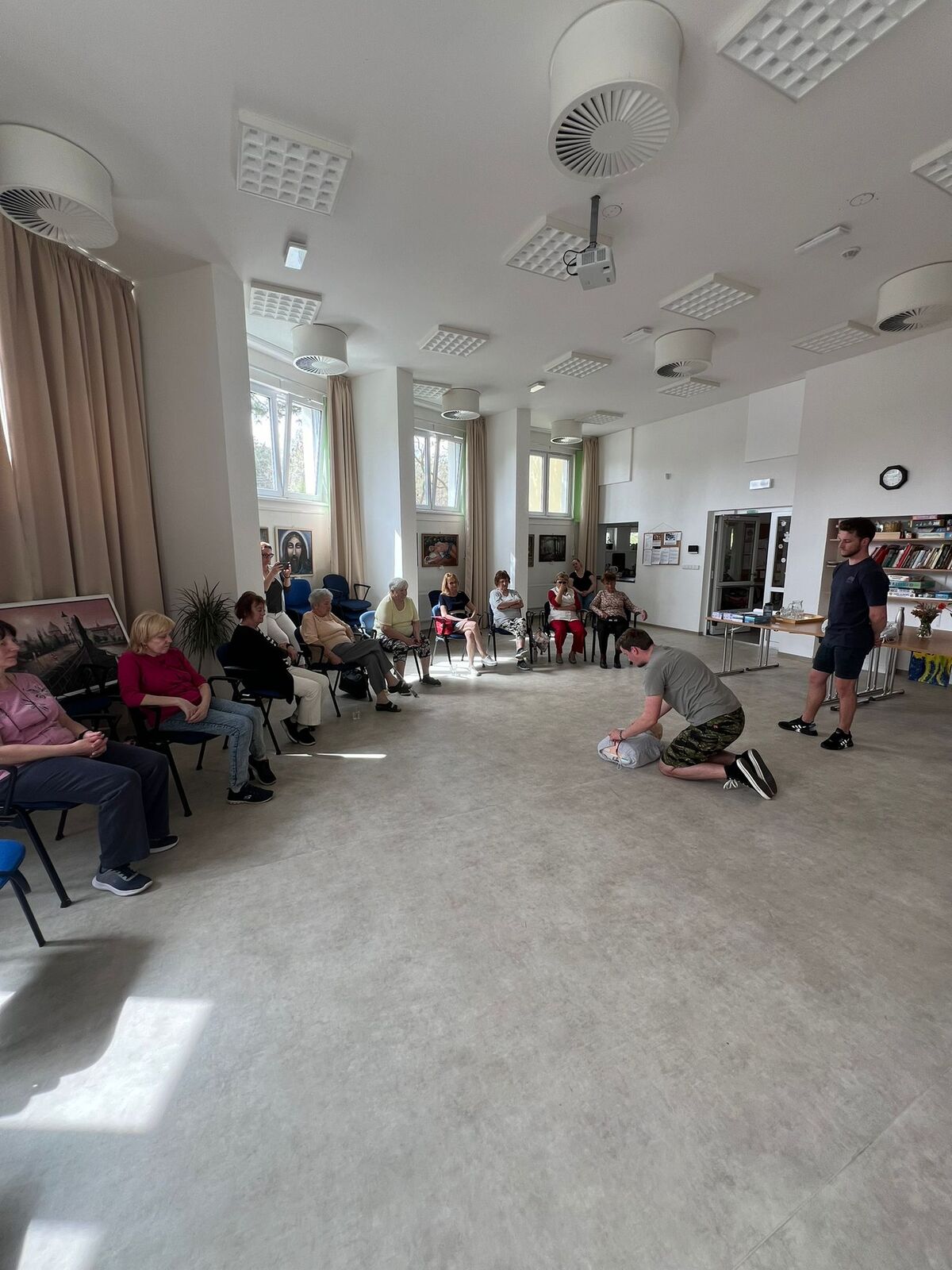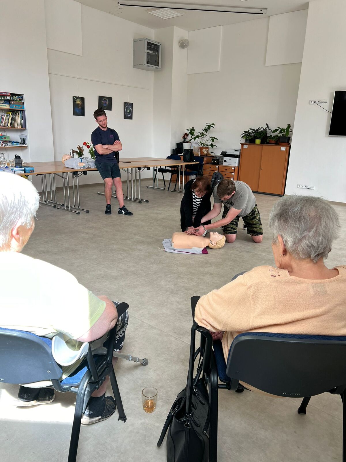 Active first aid training was a great benefit for those present seniors. Seniors had the opportunity to practice resuscitation and gain knowledge on how to recognize the signs of a heart attack or stroke. The discussion on this topic further deepened their awareness of first aid. They left the discussion with new knowledge that they can use in the future not only for themselves but also to save someone else's life. "I am very glad that the discussion was also held as part of an intergenerational meeting of students and seniors, which allowed us to connect different generations and share important information about saving life," said Markéta Hallová, coordinator of the TOTEM Nová Hospoda branch.