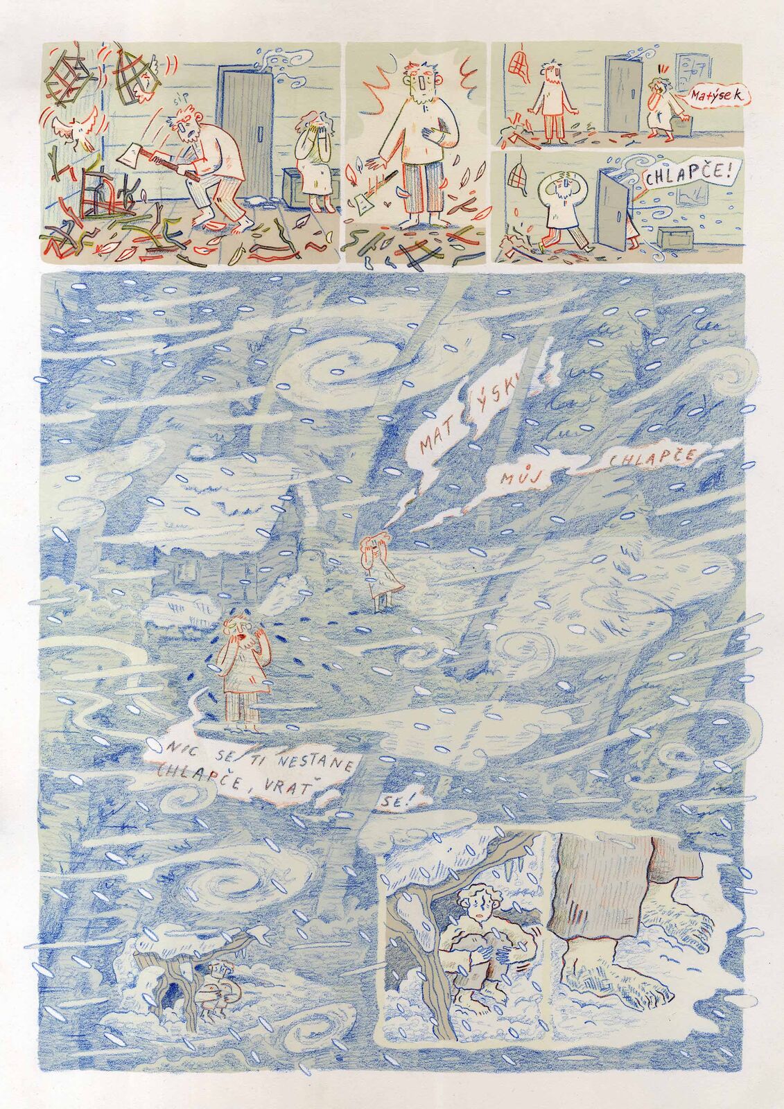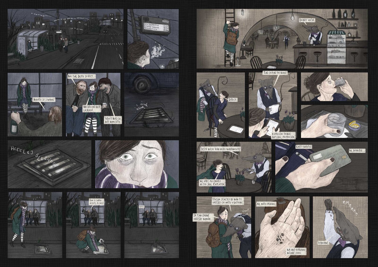 Other nominees were Anežka Nováková, also from the Comics and Illustration for Children Studio, for her work Pasti (Traps), and Václav Šlajch, head of the Media Illustration Studio, for Just Another Day in Cumbria.