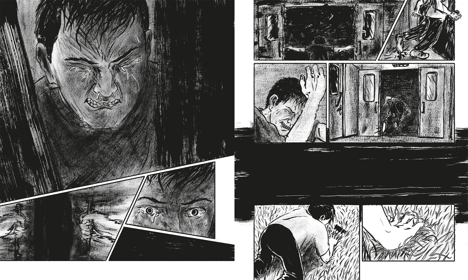 "The comic seemingly depicts a single train journey. However, this dense work creatively utilizes the dynamics of the comic page, rhythmically guiding the journey with the steady beat of the clattering railway sleepers. It is less concerned with reaching a destination than with reflecting on themes of time, chaos, and order, as well as exploring the painful echoes of the past."
