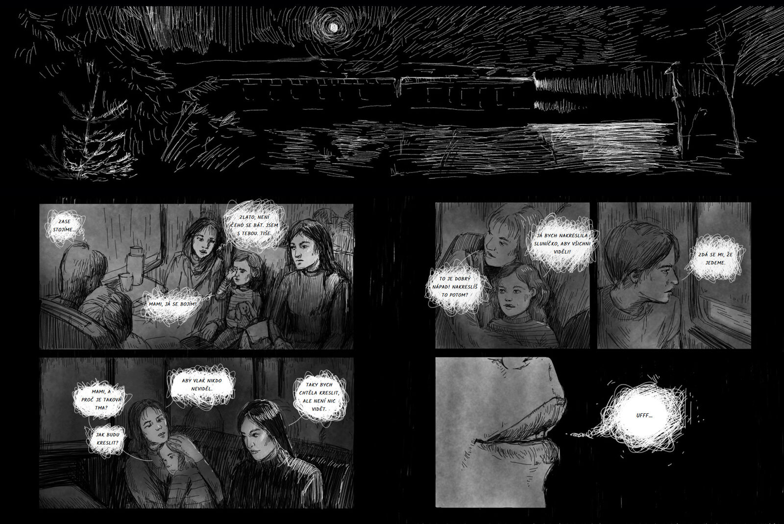 In the Best Student Comic category, Martin Schütz's Trať (The Railway Track) won for its imaginative use of the dynamics of the comic page and the rhythm of the story. The jury, consisting of David Böhm (artist), Markéta Hajská (comic scriptwriter), Viktor Janiš (translator), Pavel Kořínek (comic historian and theorist) and Tomáš Stejskal (film and comic critic), evaluated Martin Schütz's bachelor's thesis as follows: