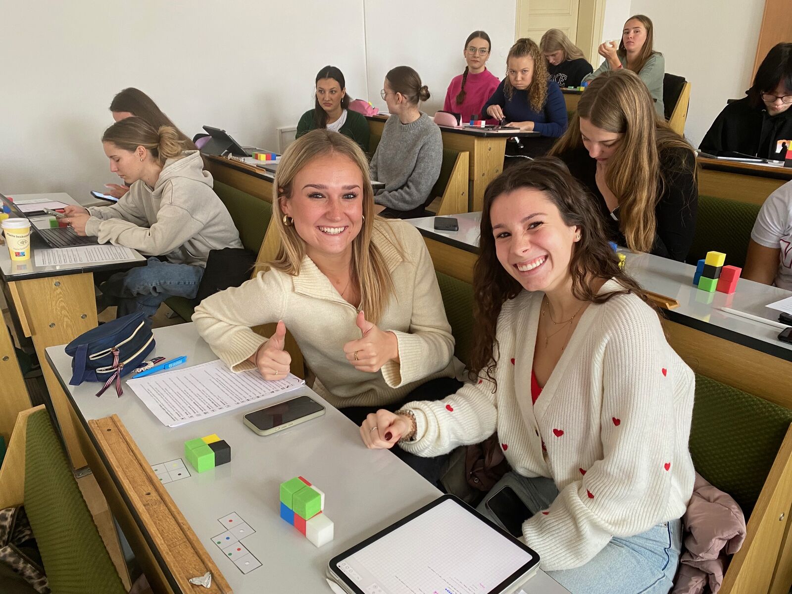 Stepping, cube building and active involvement of pupils in learning. The students of the Teacher Training for Primary School, who took part in a paired lesson with a teacher from practice Jana Tomšíková, got to know all this better. Together they discovered an unconventional approach to teaching mathematics through the Hejný method. The meeting brought inspiration for future teaching practice and offered students a unique opportunity to compare traditional teaching methods with a modern approach.