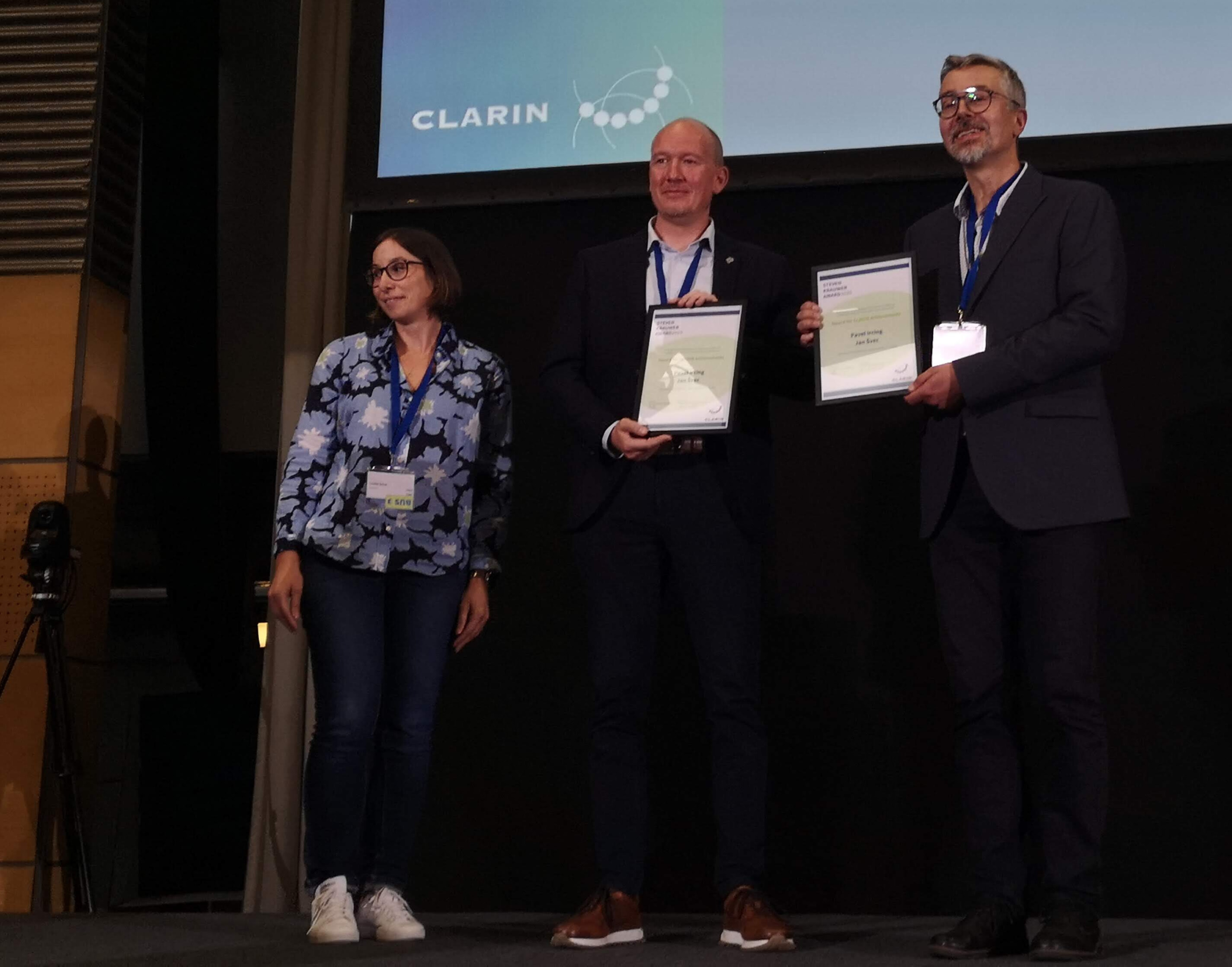 Za tuto dlouhodobou práci převzali Pavel Ircing a Jan Švec v úterý 30. září ve Vídni na výroční konferenci evropské infrastruktury CLARIN ocenění Steven Krauwer Award. „Cenu jsme sice dostali my dva, ale za výsledky stojí široký tým spolupracovníků z katedry kybernetiky a výzkumného centra NTIS. Zvláštní poděkování patří Josefu Psutkovi, Martinu Bulínovi a Janu Lehečkovi,“ uvedl Pavel Ircing.