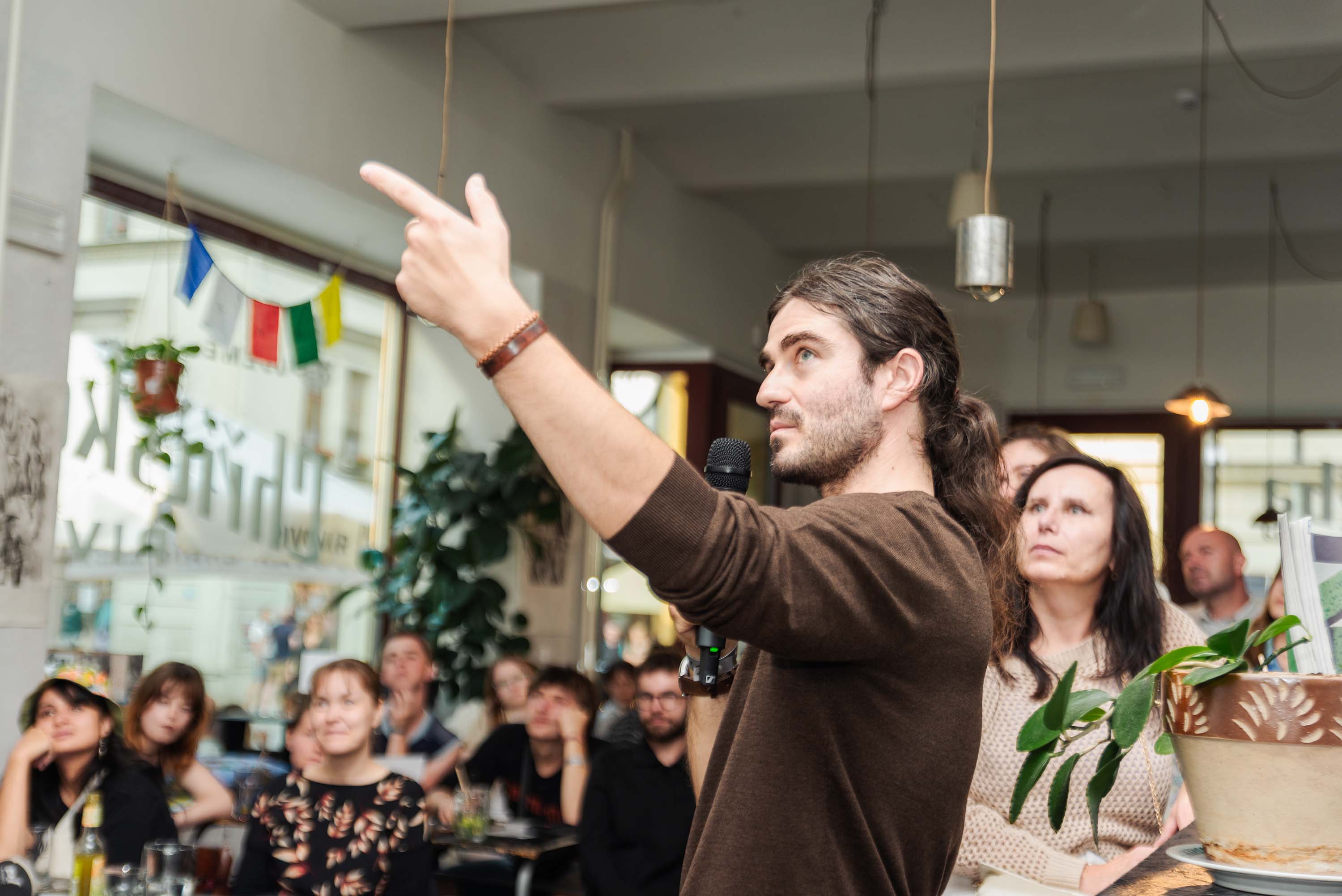 Adi Karailo na ArtCamp Talks. Foto Kristína Nguyenová