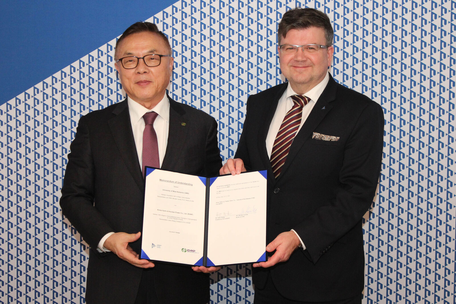 The University of West Bohemia and the South Korean state company Korea Hydro and Nuclear Power Company (KHNP) concluded a memorandum of understanding. The contract was signed by UWB rector Miroslav Lávička and KHNP president Dr. Jooho Whang at a meeting of UWB and KHNP representatives on Tuesday, January 16.