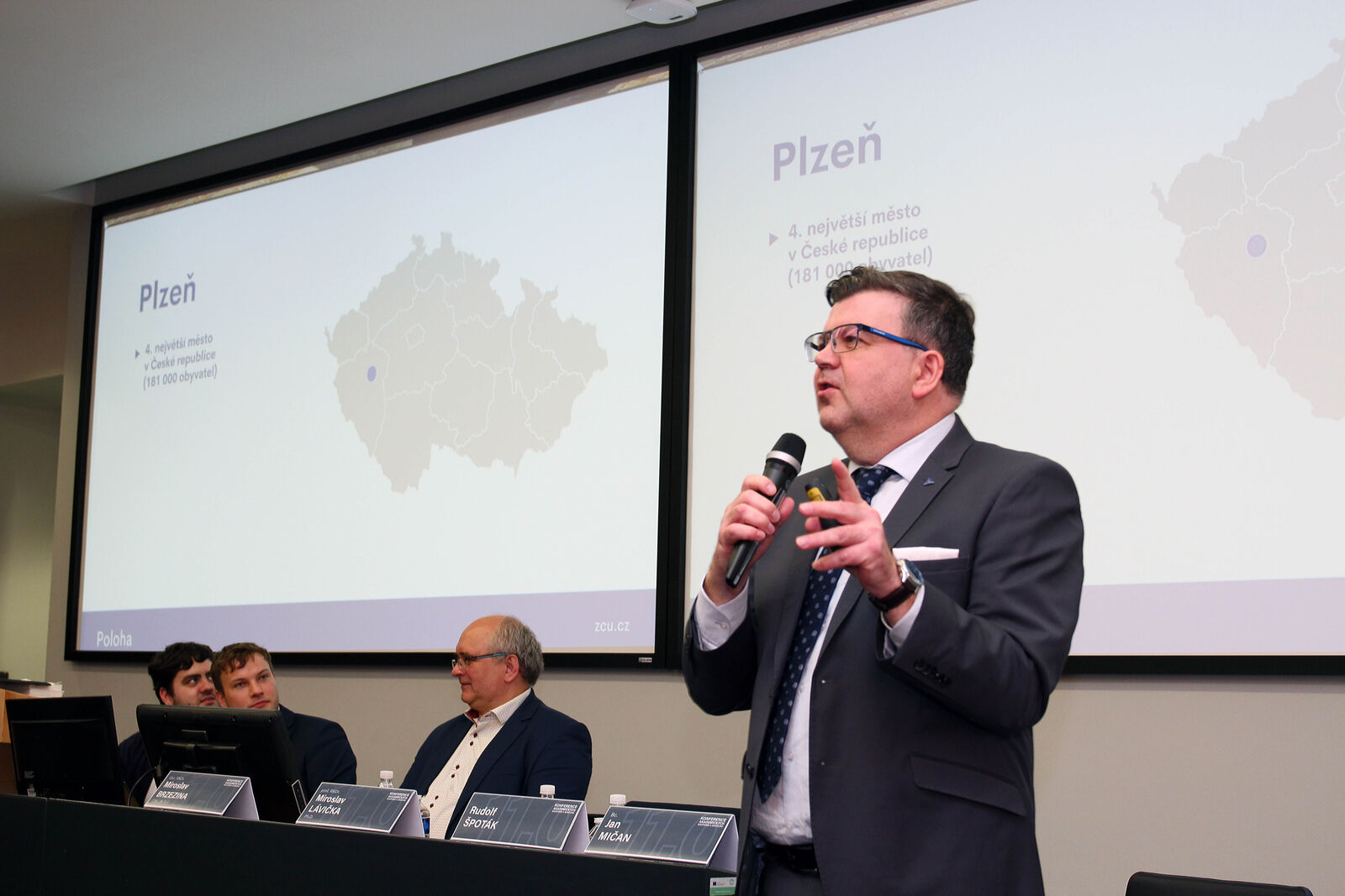 V odpoledním bloku se pak rektor Miroslav Lávička a hejtman Plzeňského kraje Rudolf Špoták shodli na tom, že obecným problémem západočeského regionu je malý zájem o technické obory. „Úkolem kraje a univerzity je spolupracovat na nabídce oborů, které budou navazovat na pracovní místa a potřeby zaměstnavatelů a které budou pro současné generace studentů na středních školách i dostatečně atraktivní," řekl studentským zástupcům a zástupkyním hejtman Rudolf Špoták. Každý absolvent vysoké školy si podle něj musí položit otázku - proč chci pracovat právě tady?