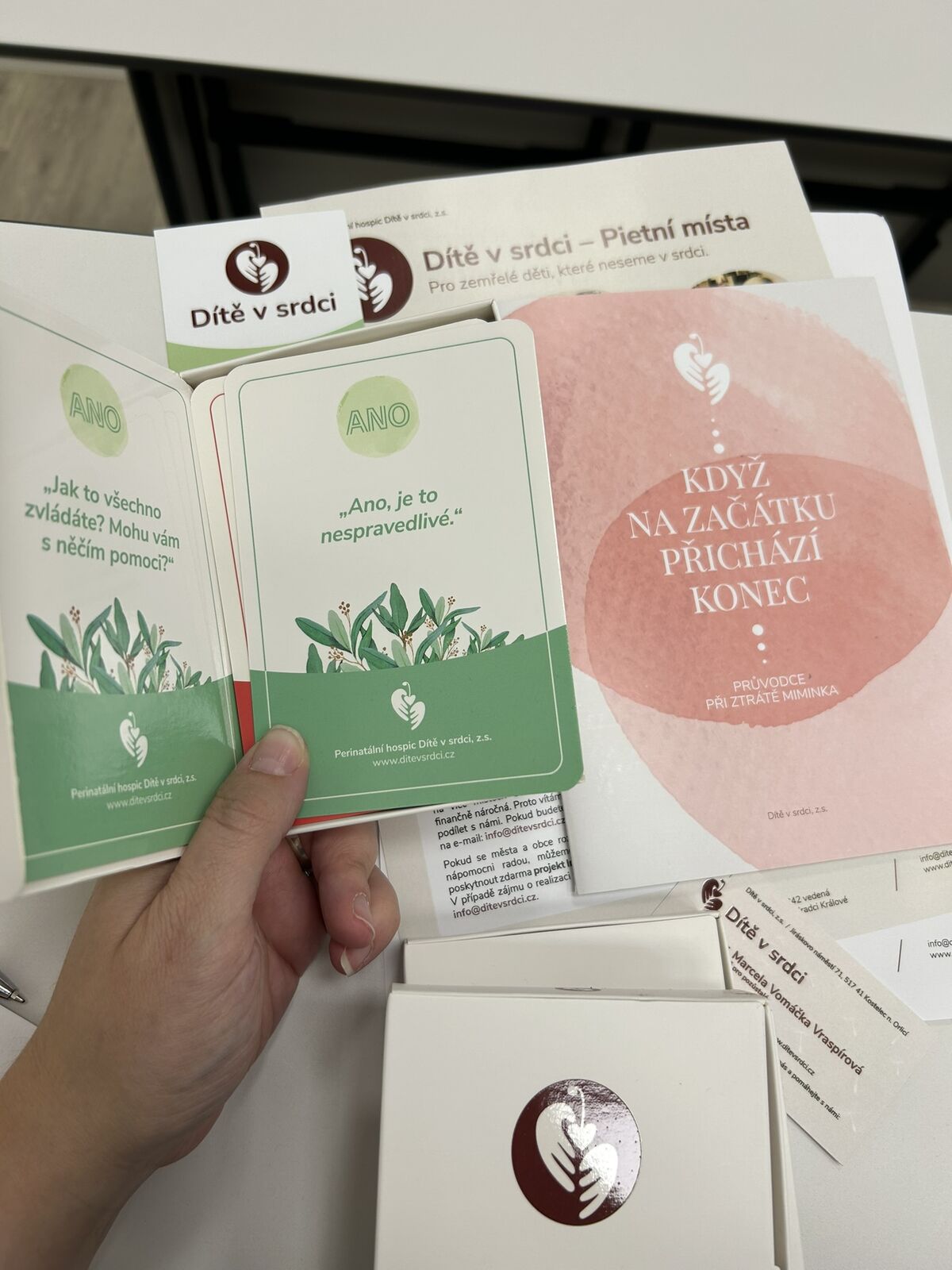 Participants had the opportunity to get acquainted with the therapeutic aid Memorybox. Various types of Memoryboxes are supplied free of charge to more than half of the hospitals in the Czech Republic, thanks to which memories of the baby can be preserved, they can also guide through the grieving process and help to gradually process the loss of the baby. Dítě v srdci also provides training for health professionals on how to use Memoryboxes in practice and how their contents help families after a loss. The box contains items such as clothes, a diaper, a blanket, a storybook, bracelets for mom and baby, 2 identical toys, communication cards and other tools.