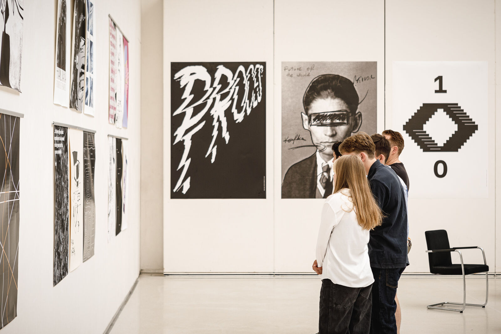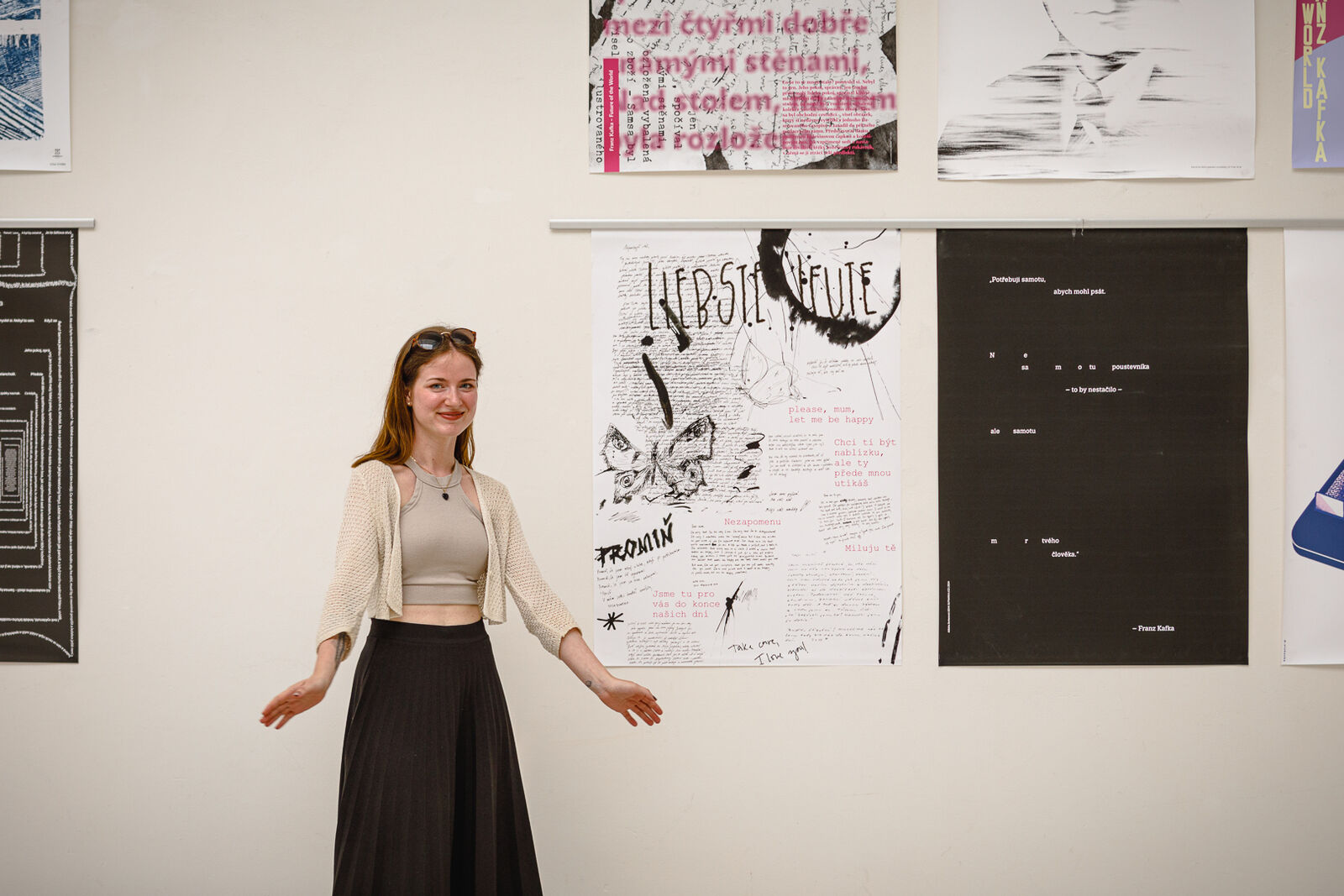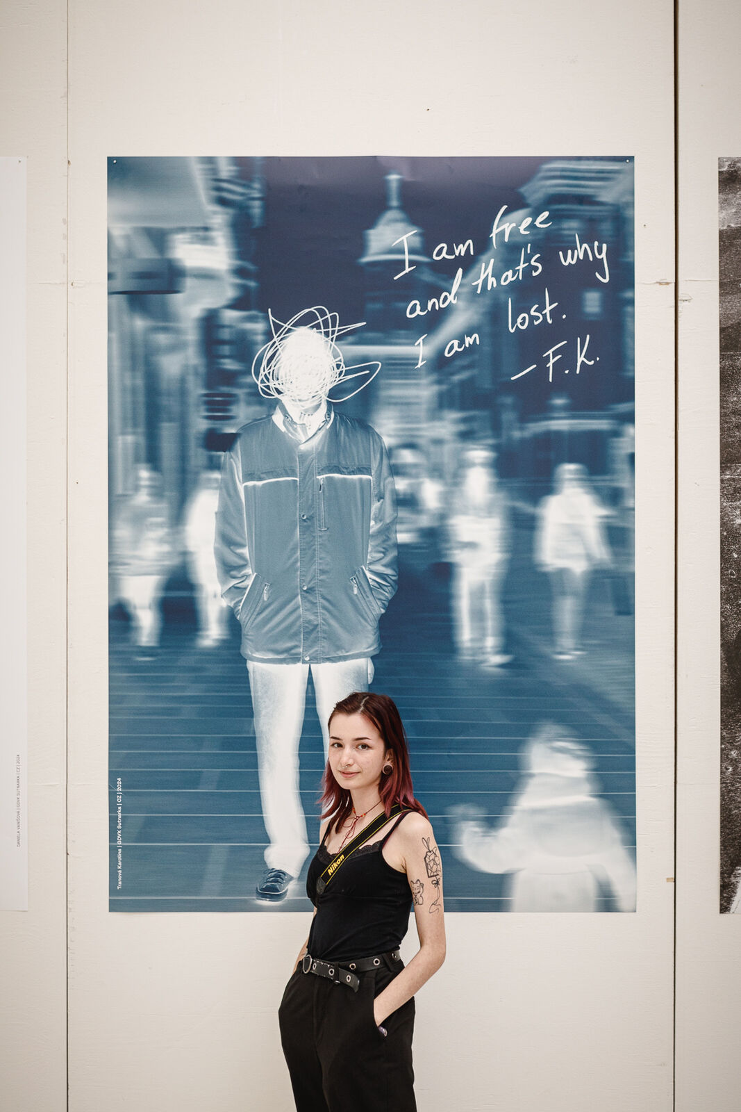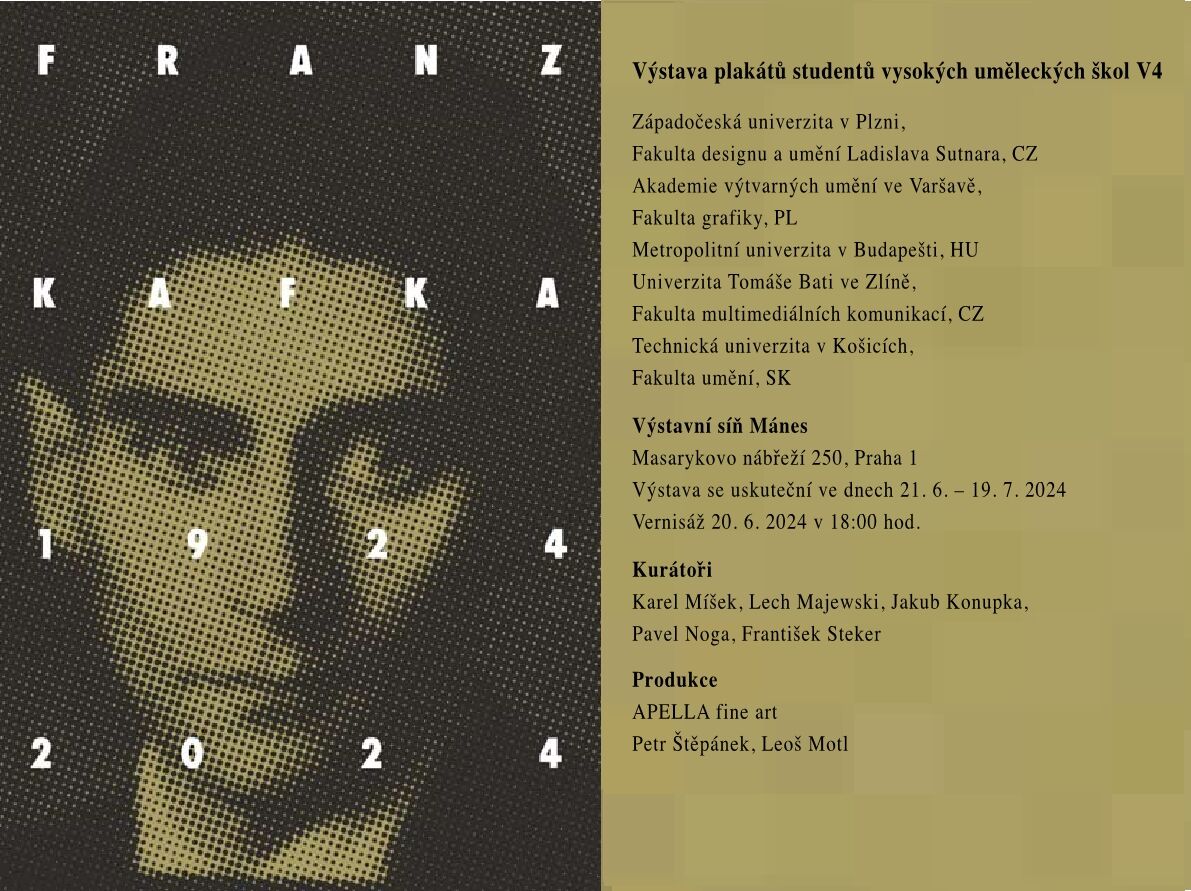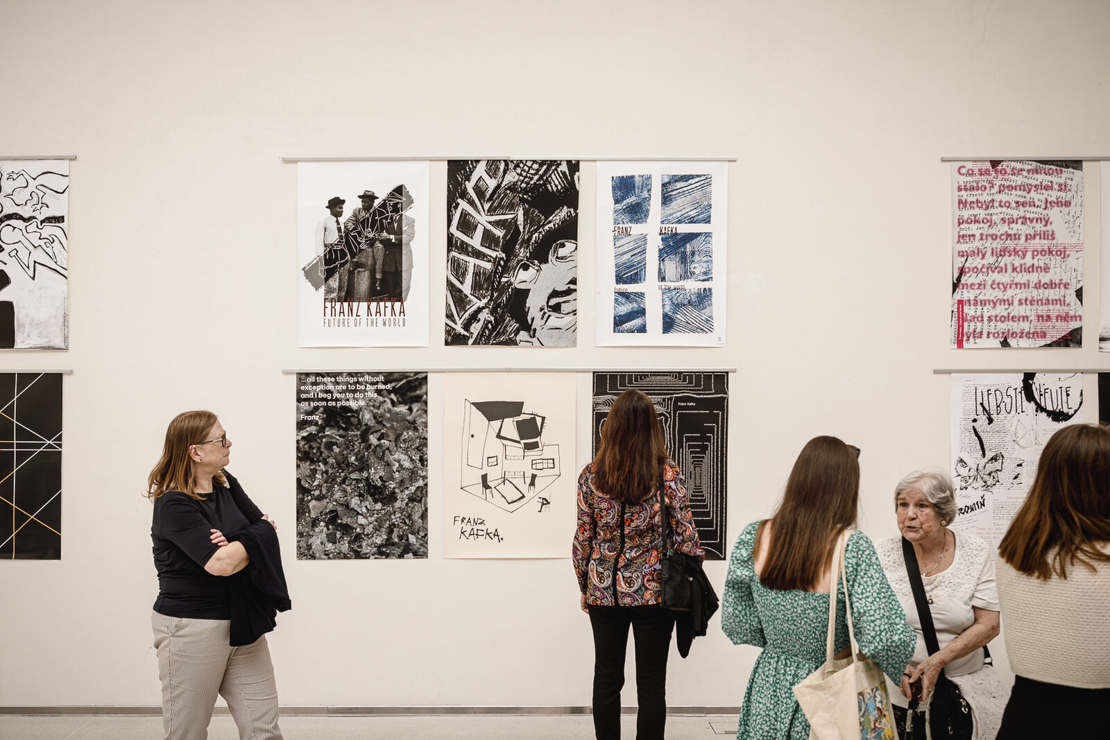 In addition to some forty posters by students and graduates of the Graphic Design and Visual Communication Studio at the Ladislav Sutnar Faculty of Design and Art in Pilsen, the exhibition also features a sculpture by Tereza Čecháčková from the Sculpture and Space Studio. The exhibition is introduced by a poster and an invitation by Professor Karel Míšek. The texts by Franz Kafka accompanying the exhibition are in the original font by Jakub Konupka, an assistant at the same studio.