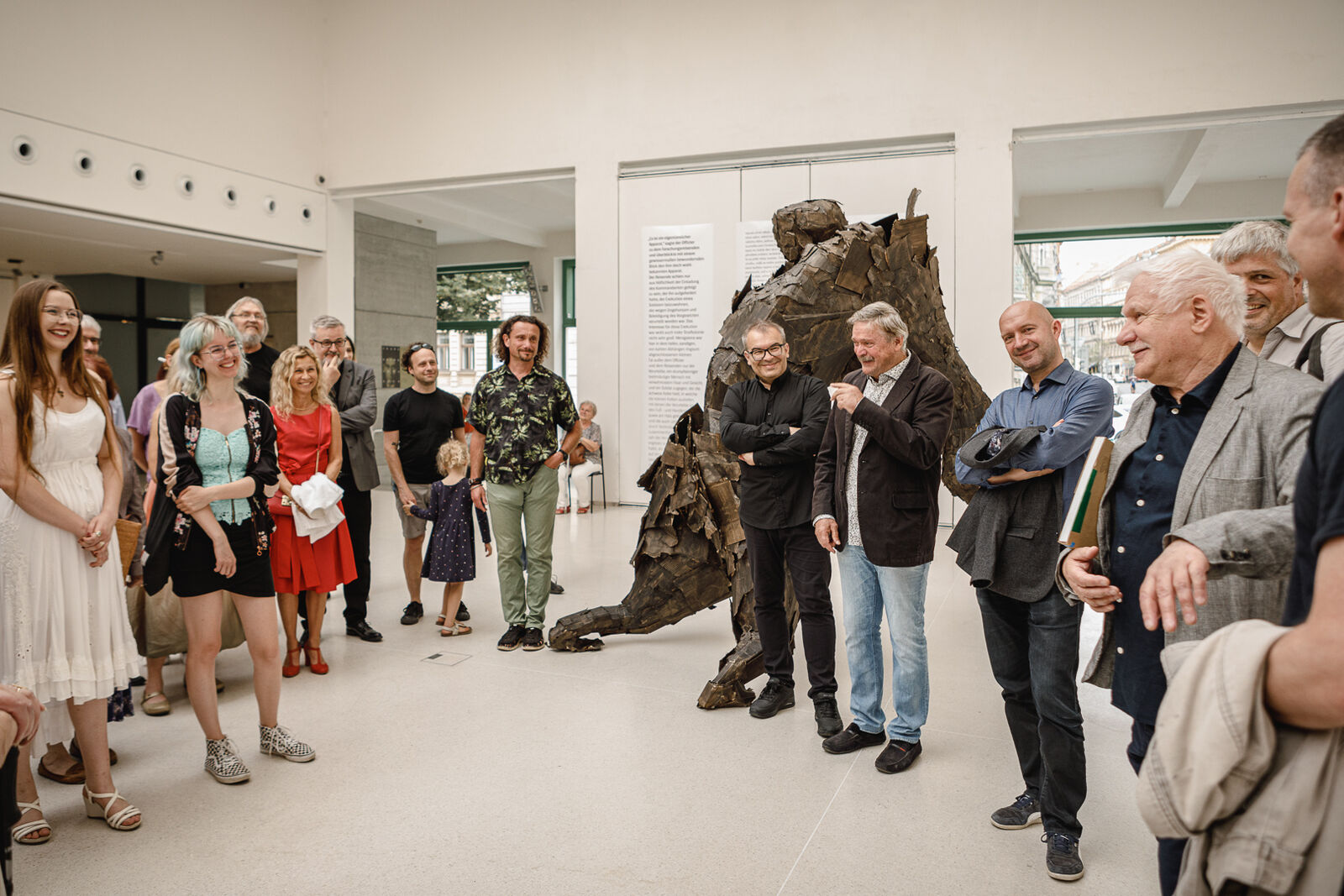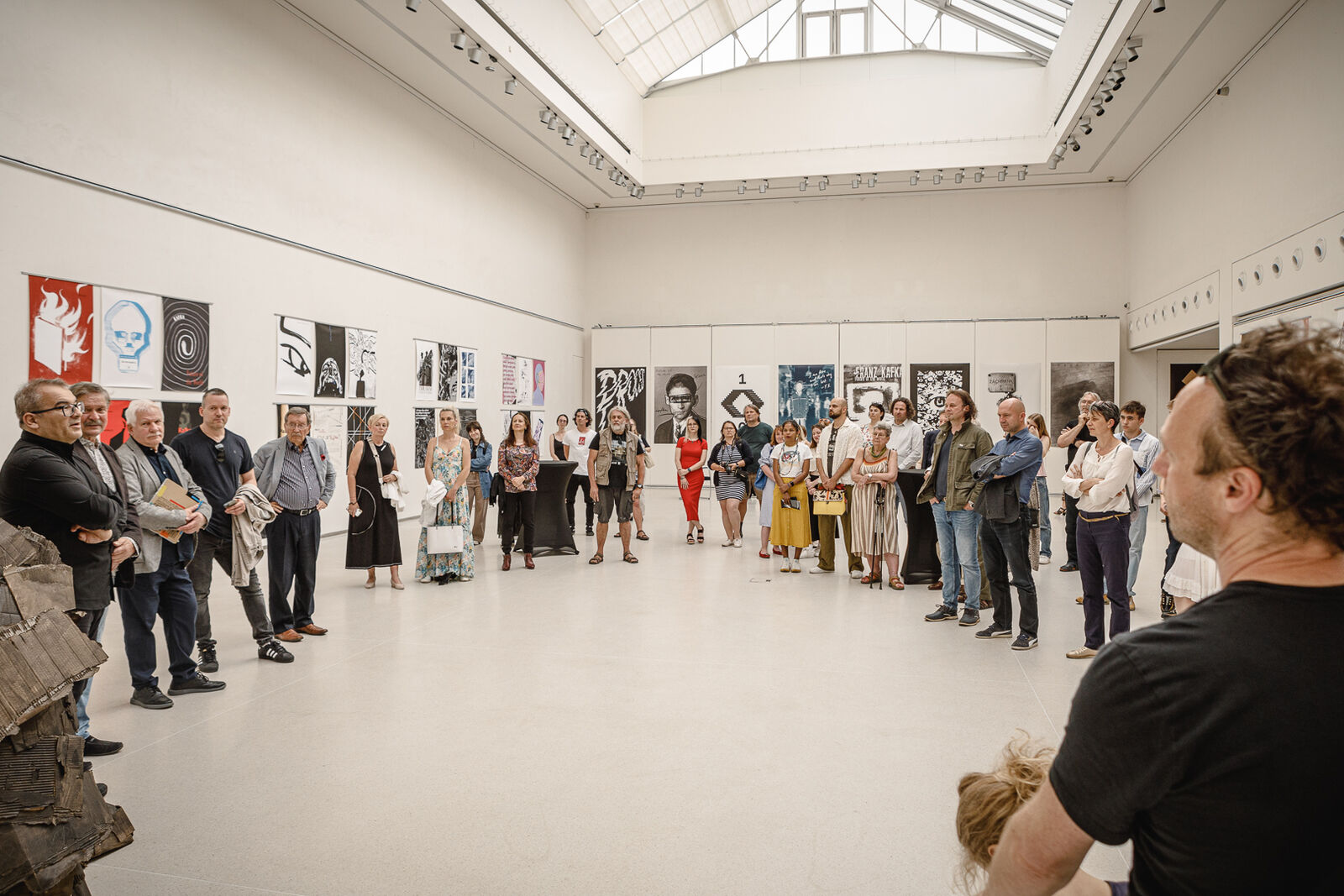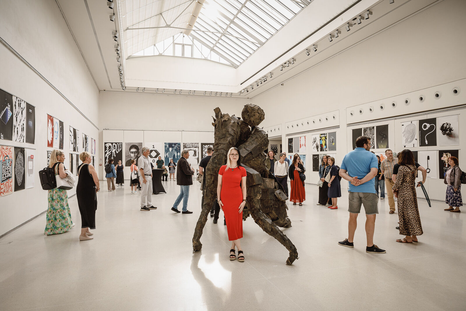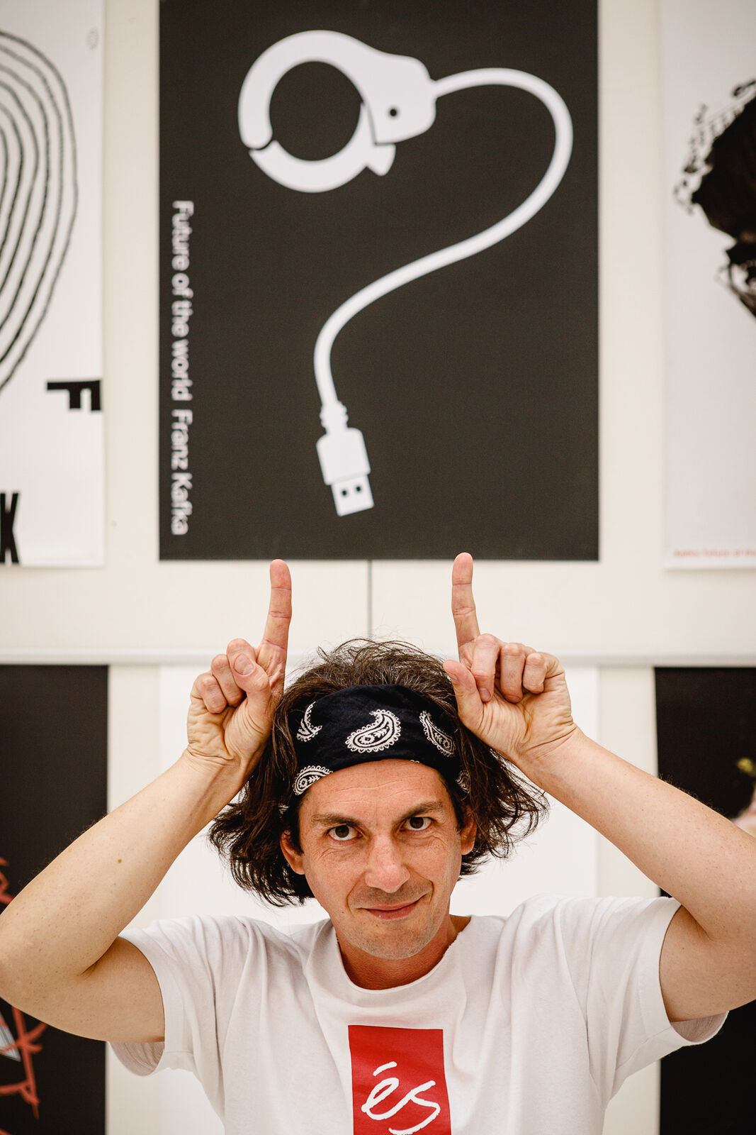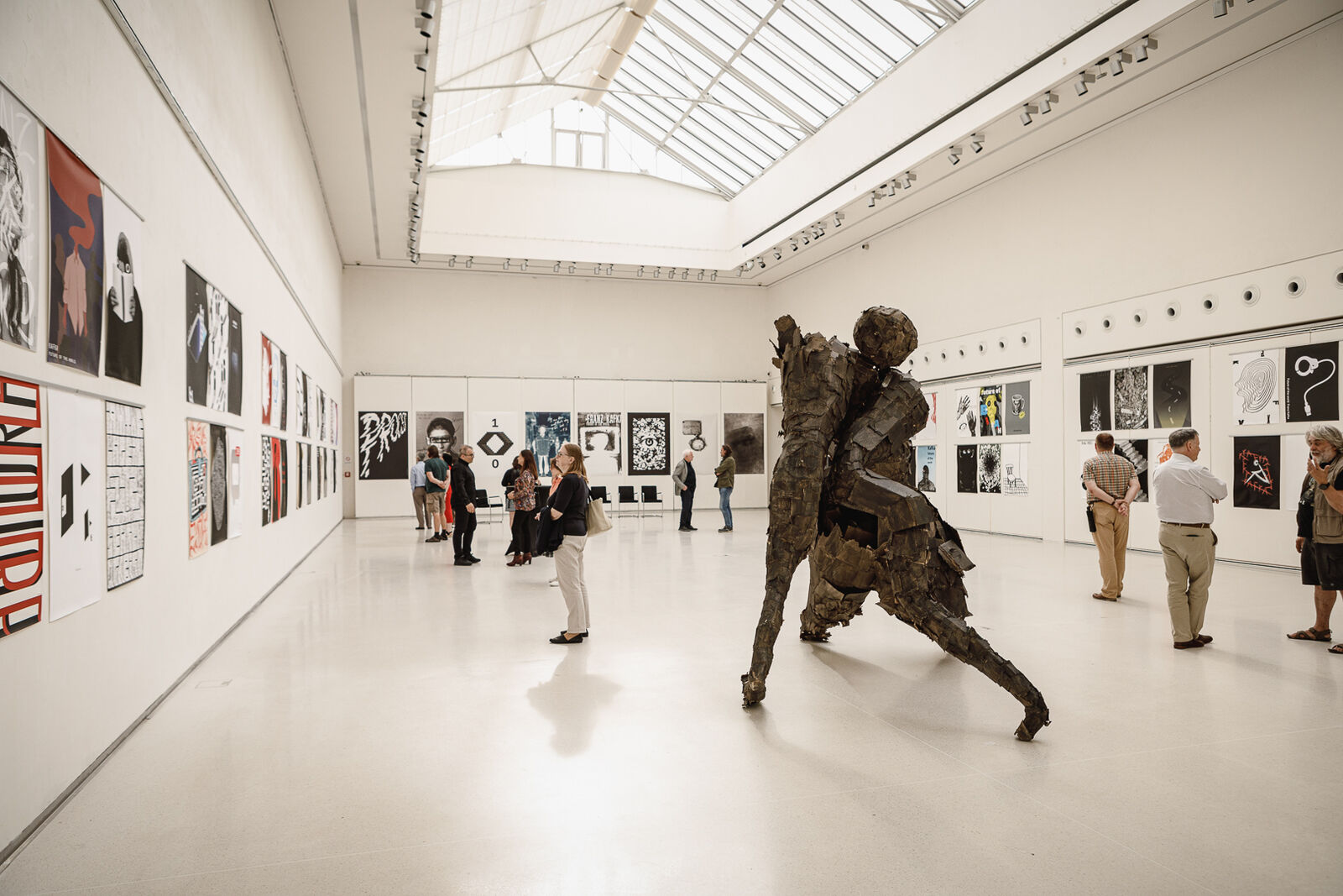 In addition to some forty posters by students and graduates of the Graphic Design and Visual Communication Studio at the Ladislav Sutnar Faculty of Design and Art in Pilsen, the exhibition also features a sculpture by Tereza Čecháčková from the Sculpture and Space Studio. The exhibition is introduced by a poster and an invitation by Professor Karel Míšek. The texts by Franz Kafka accompanying the exhibition are in the original font by Jakub Konupka, an assistant at the same studio.