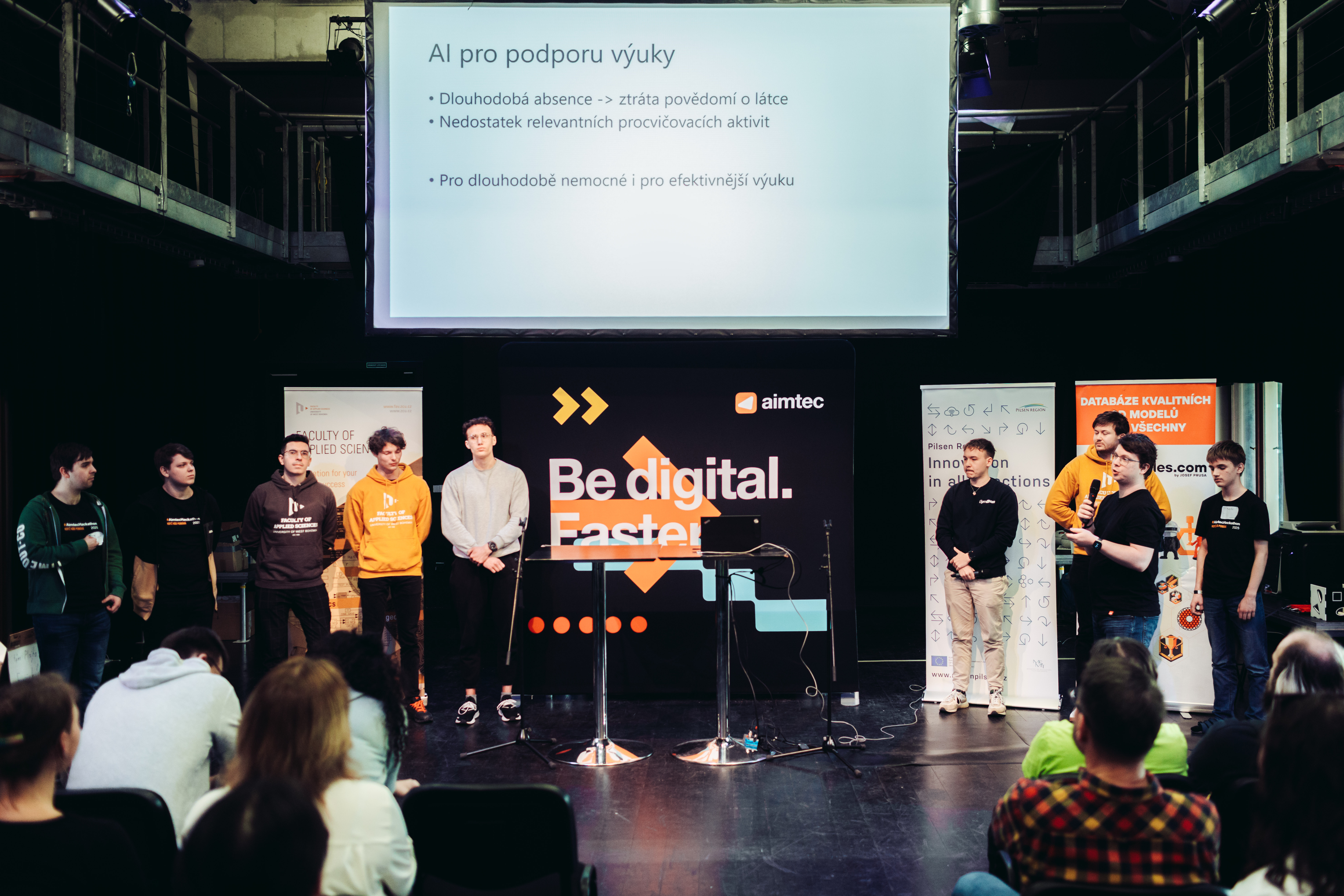 The second place and the public prize went to the FAVoriti team consisting of eight students from the Faculty of Applied Sciences of the University of West Bohemia, a student from the Faculty of Education of the University of West Bohemia and a student from the Mikulášské Gymnasium in Pilsen. Their project aimed to simplify studies for long-term sick students and their teachers. Using artificial intelligence, they created a platform that offers lecture recordings, lecture summaries, knowledge quizzes, and all the materials on the material discussed in one place.