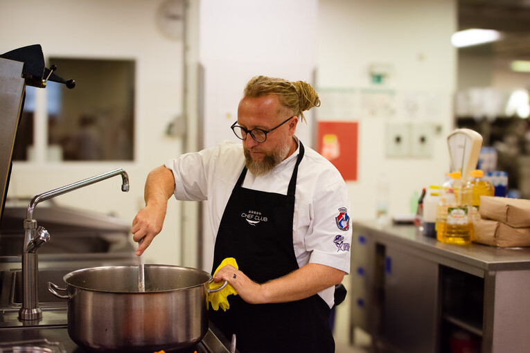 Společně s Poppem připravoval menu také David Wisniowski, šéfkuchař společnosti Orkla. Zdůraznil, že součástí udržitelného přístupu je i zdravější složení jídel: „V polévce jsme se třeba chtěli vyvarovat lepku, aby byla snadno stravitelná.“