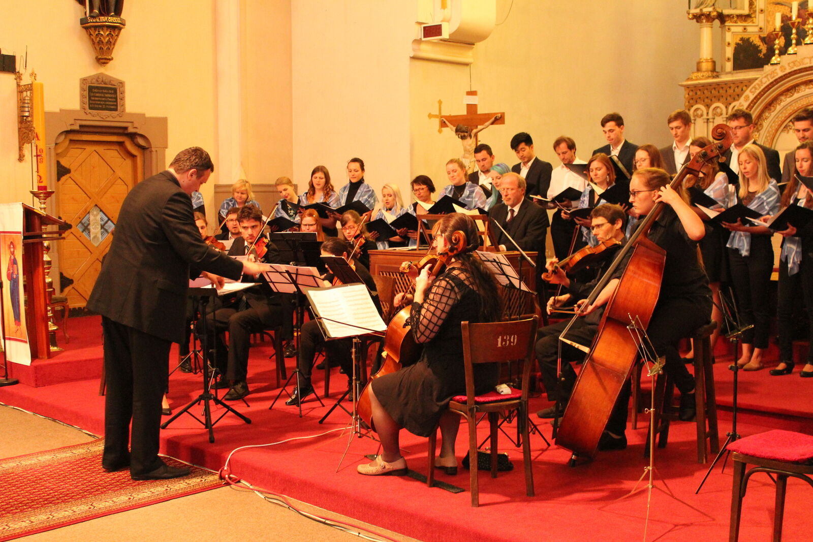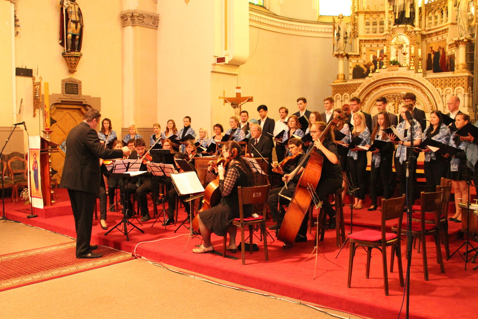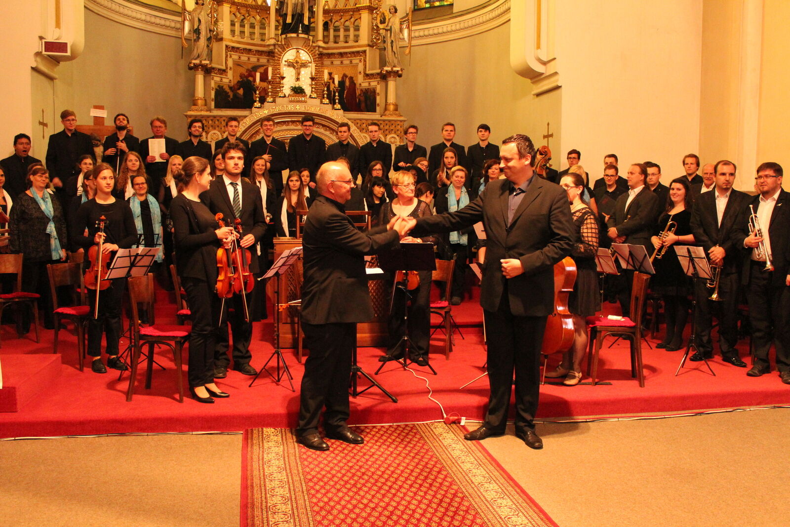 Slavnostní koncert pak skladbou Wolfganga Amadea Mozarta (1756 - 1791) Te Deum laudamus uzavřely společně sbor Hochschule für katholische Kirchenmusik a Kolegium pro duchovní hudbu Klatovy.