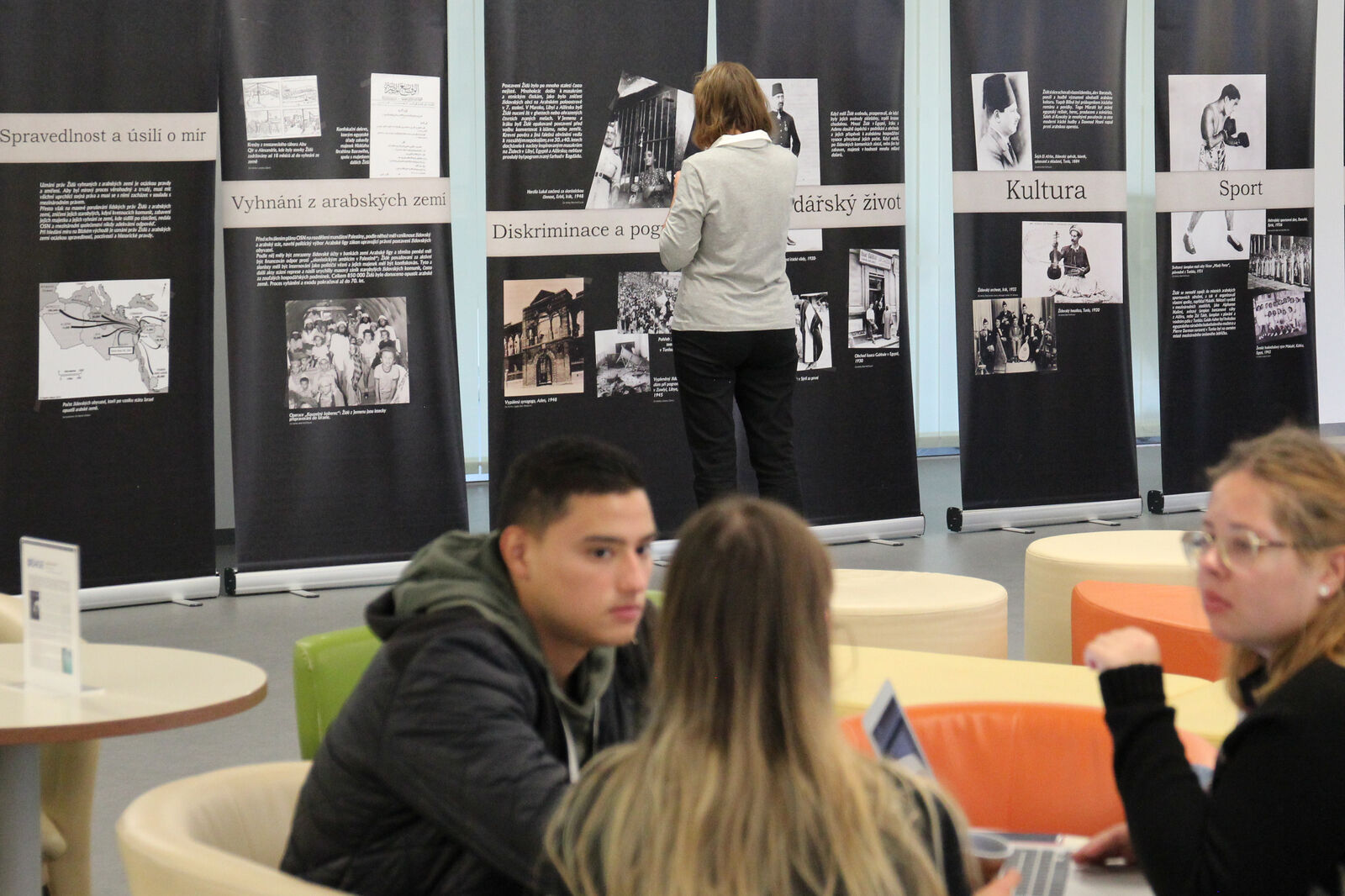 V knihovně jsou tedy k vidění panely, jež na židovské uprchlíky nahlížejí z pohledu mezinárodního postavení, hospodářského života, vzdělávání, sportu, kultury i náboženství. Texty a fotografie rovněž mapují formování státu Izrael a integraci arabských židů. To vše rámují osobní příběhy, jakým je například osud Reginy Bublil Waldman, které bylo devatenáct let, když vypukla Šestidenní válka mezi Izraelem a jeho arabskými sousedy, a kterou u sebe doma ukrýval britský inženýr – křesťan. Rodina ženy pocházející z Libye se pak dostala do Říma, kde žije dodnes.